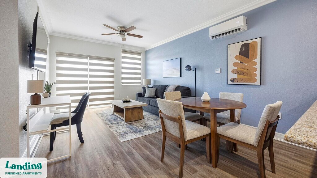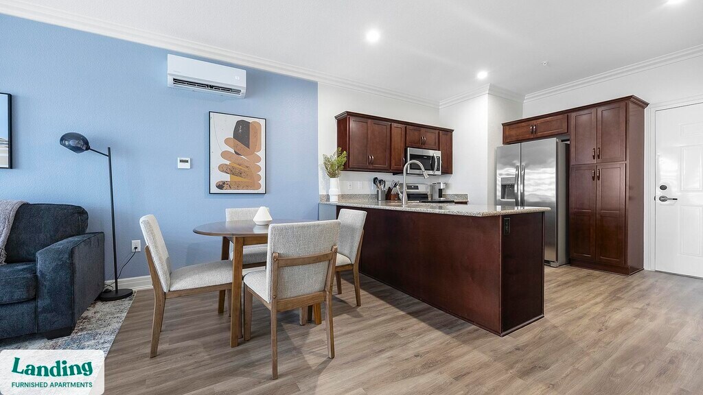 Landing offers flexible lease terms from weeks to months. Please always visit our website or contact us for the latest pricing & availability. Stay longer, save more: 6-Month Minimum base rent: starts at $1908/mo 12-Month Minimum base rent: starts at $1899/mo Landing offers flexible leases across a network of over 35,000 fully-furnished apartments throughout 375+ cities so you can rent on your terms, practically anywhere, and avoid the hassle of paying deposits or application fees. Visit to learn about all the benefits of a Landing membership, see our competitive up-to-date pricing, explore available apartments, take virtual tours, and make reservations online without jumping through traditional rental hoops. Landing's apartments at Ledge Rock are designed for comfortable, easy living, with the ability to stay as long as you like. Experience living with Landing Every apartment is outfitted with all the modern essentials including: custom-designed furnishings, a fully-equipped kitchen with deluxe stainless steel appliances, a gourmet coffee maker, premium linens, Smart TVs, and incredibly fast, reliable internet for working from home. When you live with Landing, you'll enjoy a hassle-free experience with the added benefit of 24/7 access to our dedicated member experience team. Some of the nitty-gritty: a background check and proof of income are required; we're completely smoke-free; bundled utility packages and pricing vary based on length of stay; pet-friendly options available; listed price reflects a 12-month minimum stay.