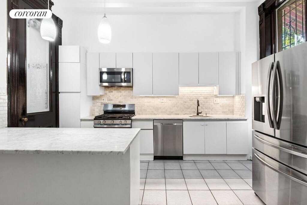 Nestled gracefully among the stately brownstones on one of the widest and most picturesque streets in Park Slope, this triplex 5-bedroom, 3-bath townhouse is every renter's dream come true. Recently refreshed with new floors, a fresh paint job, and updated lighting throughout, this lovingly maintained home combines original detail with modern upgrades. A massive, high-ceilinged parlor welcomes family and guests with warmth and sunlight, flowing effortlessly through bay windows into a spacious eat-in kitchen and dining area. The kitchen is fully equipped with quality appliances and bathed in natural light from the adjacent south-facing terrace-perfect for morning coffee or evening gatherings. Upstairs you'll find four impressively large bedrooms (one featuring a luxurious en suite bath and walk-in closet) and an additional smaller bedroom. Throughout the home you'll notice original mantles, lofty ceilings, and beautiful floors that elevate the sense of space and light. A laundry area and two additional full baths complete the upper levels. Step outside and you're just a short stroll from Prospect Park, plus dozens of beloved dining, shopping, and neighborhood favorites-making life at 416 3rd Street as convenient as it is charming. Yes, it's pet-friendly. Yes, it's beautifully updated. Yes, it's everything you've been searching for. Stop searching. This is the one. Welcome home.Fee Description:$20 application fee per person First months rent Security Deposit