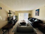 Welcome home to this bright, happy condo that feels huge from the moment you walk in.You're going to love the kitchena"it's got a real personality with deep blue cabinets, modern counters, and stainless steel appliances that make cooking actually enjoyable. The whole place has tile flooring, which looks great and makes cleaning a breeze. The living room gets tons of natural light thanks to the big sliding glass doors, and there's plenty of space to set up a dining area for dinner with friends. The bedroom is spacious (big enough for a king bed!), and outside, you've got perks you'll actually use: tennis and pickleball courts, nice green lawns, and plenty of easy parking.