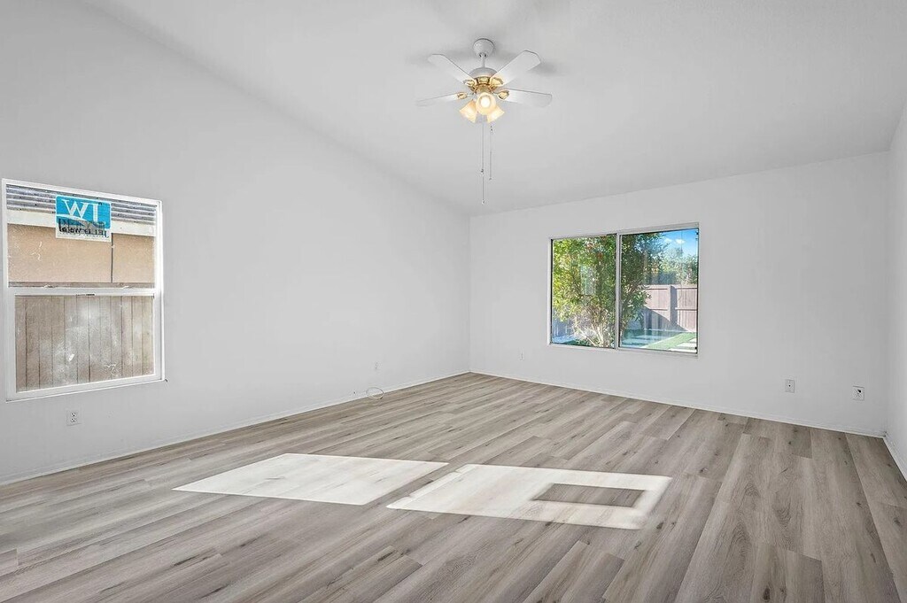 Welcome to this beautifully maintained pool home located in one of Bermuda Dunes most desirable and centrally located neighborhoods. Offering 1,942 square feet of living space on a generous 7,840 sq ft lot, this home combines comfort, functionality, and outdoor living. The interior features a spacious open-concept layout with an expansive living room and kitchen area, ideal for entertaining or everyday family living. The home has been freshly painted and showcases laminate flooring throughout, creating a clean, modern feel with easy maintenance. The kitchen comes fully equipped with appliances, including refrigerator, microwave, range, and oven, and the home also includes a washer and dryer, making it truly move-in ready. A newer AC unit ensures efficient cooling during the desert’s warmer months. Step outside to a private backyard featuring new desert landscaping, a sparkling pool and spa, and ample space for relaxation or hosting guests. The property also includes a 2-car attached garage and a large lot that offers both privacy and room to enjoy the outdoors. With its prime location, generous living space, and well-appointed upgrades, this Bermuda Dunes home offers the perfect blend of comfort, convenience, and resort-style living.