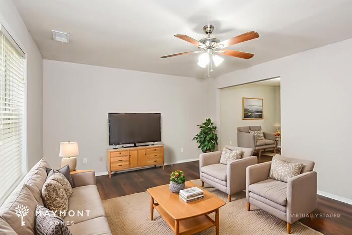 MOVE-IN READY This home is move-in ready. Schedule your tour now or start your application today. Monthly Recurring Fees: $25.00 - Smart Home $10.95 - Utility Management Maymont Homes is committed to clear and upfront pricing. In addition to the advertised rent, residents may have monthly fees, including a $10.95 utility management fee, a $25.00 wastewater fee for homes on septic systems, and an amenity fee for homes with smart home technology, valet trash, or other community amenities. This does not include utilities or optional fees, including but not limited to pet fees and renter’s insurance. Tucked back from the road and framed by tall trees, this inviting 3-bedroom, 2-bath home offers a perfect blend of comfort and charm. A welcoming front porch greets you, setting the tone for the warm and inviting spaces that await inside. Fresh interior paint brightens each room, creating a move-in ready feel that complements the home’s practical layout. Step into the spacious living area, where natural light filters through large windows, highlighting the rich flooring and open feel. The kitchen, complete with ample cabinetry, flows easily into the dining space, making mealtime a breeze. Bedrooms are thoughtfully placed for both privacy and convenience, with the main suite offering its own bathroom retreat. Out back, a fenced yard with a small deck area invites you to unwind or entertain under the shade of surrounding trees. Whether you’re sipping coffee on the porch or hosting a backyard get-together, this home offers comfort in every corner. *Maymont Homes provides residents with convenient solutions, including simplified utility billing and flexible rent payment options. Contact us for more details. This information is deemed reliable, but not guaranteed. All measurements are approximate. Actual product and home specifications may vary in dimension or detail. Images are for representational purposes only. Some programs and services may not be available in all market areas. Prices and availability are subject to change without notice. Advertised rent prices do not include the required application fee, the partially refundable reservation fee (due upon application approval), or the mandatory monthly utility management fee (in select market areas.) Residents must maintain renters insurance as specified in their lease. If third-party renters insurance is not provided, residents will be automatically enrolled in our Master Insurance Policy for a fee. Select homes may be located in communities that require a monthly fee for community-specific amenities or services. For complete details, please contact a company leasing representative. Equal Housing Opportunity. Estimated availability date is subject to change based on construction timelines and move-out confirmation. This property allows self guided viewing without an appointment. Contact for details.
