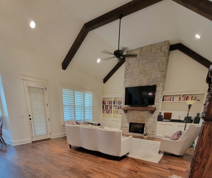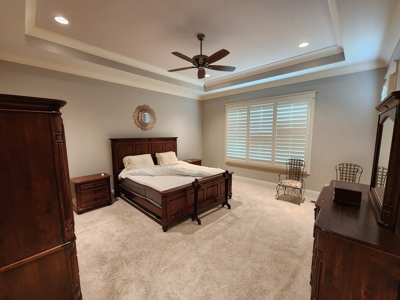Don't miss out on this BEAUTIFUL home that backs up to Arrington Creek! This house affords so much room to spread out with a primary bedroom and guest bedroom downstairs, two bedrooms upstairs, a spacious bonus room, large great room with fireplace, and a lovely screened in porch off the back! Plantation shutters throughout the house are an added bonus. Free-standing tub and walk-in shower in primary bathroom. Walk-in pantry, built-in shelves and cabinetry, oversized laundry room, and extra closets provide plenty of storage for kitchen and household items. Mudroom area is conveniently located across from the door leading to the garage.