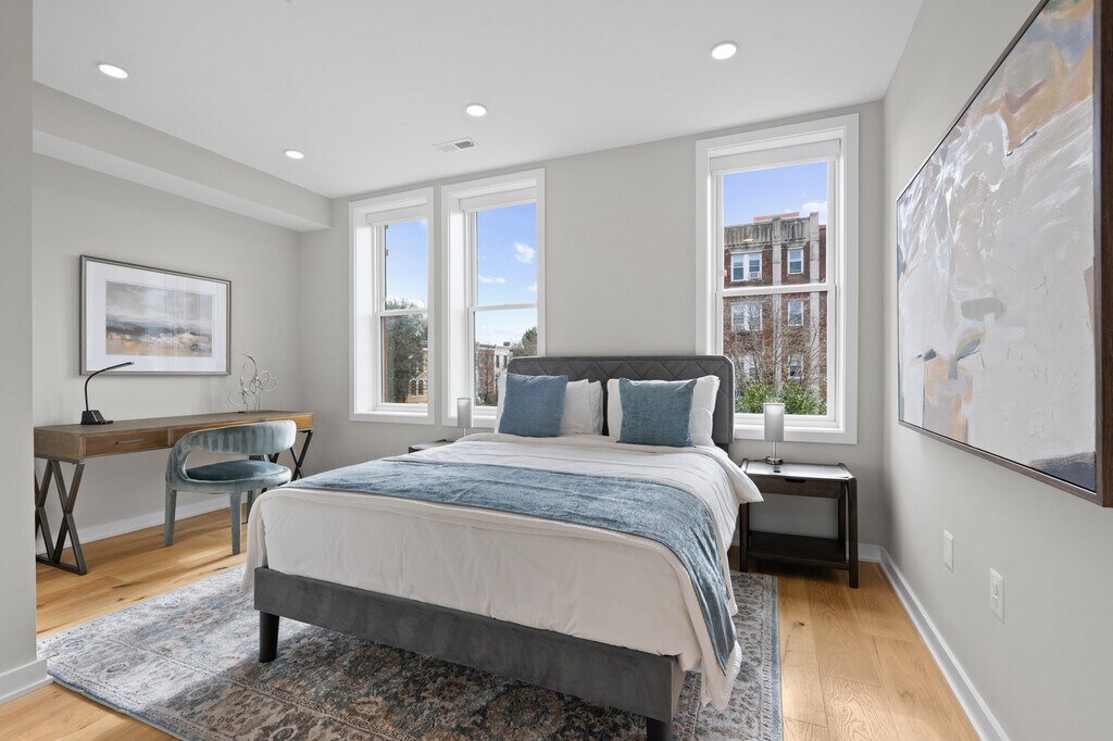 Feel at home in this newly constructed 2024, fully furnished 3-bedroom, 2-bathroom apartment, occupying the top two floors of a 2-unit, 4-level townhouse. The kitchen is equipped with top-of-the-line Samsung Stainless Steel appliances and custom J Suss cabinetry, ensuring both style and functionality. The quartz countertops add a touch of elegance to the spacious kitchen, while the large bedroom and spa-inspired bathroom offer an oasis of comfort and luxury. The bedroom features systems for optimum organization including a desk and full-size washer and dryer, ensuring convenience and efficiency. The wide plank hickory oak flooring throughout adds warmth and character to the space. The unit has a second desk in the living room along with a highly rated OLED big screen TV, creating an inviting environment for both living and entertaining. New, clean, and serene, this property offers the best of both worlds. Located on a charming street three blocks from the Eastern Market metro, Trader Joe's, restaurants, coffee shops, and endless conveniences, you can bask in all that the Eastern Market neighborhood offers. Yet, the street is calm and quiet, providing a secure feeling in one of the safest neighborhoods in Washington with a police station two blocks away and multiple security options installed in your unit. [SI]