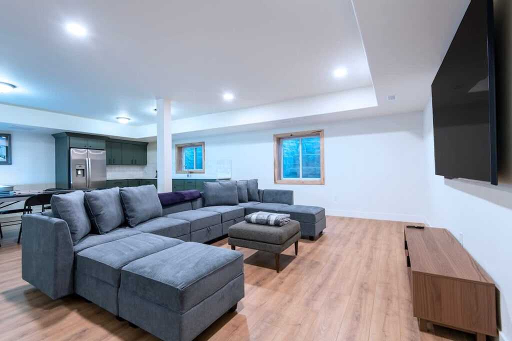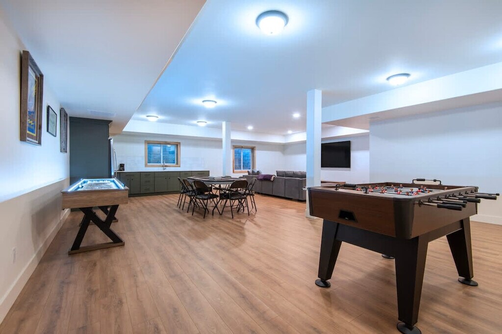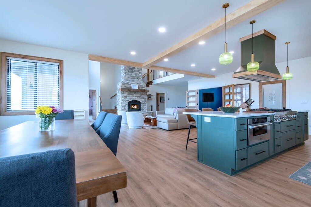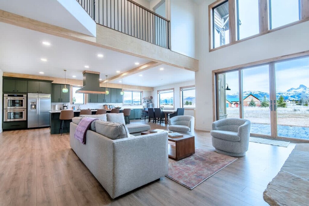 Welcome to the Grand Horizon Retreat, a breathtaking 6,200 sq ft luxury lodge nestled in Teton Valley, Idaho. This stunning 7-bedroom home offers unrivaled views of the Grand Tetons and features a private theater, hot tub, and ample space for up to 14 guests, ensuring you feel at home in a perfect blend of adventure, luxury, and comfort. This spacious lodge boasts Teton views that steal the show, with cinematic sunsets and direct access to world-class skiing, hiking, and two national parks. The home includes 3 private master suites with en-suite bathrooms, a bunk room with 6 built-in beds, and additional queen and king rooms for flexible group layouts. Enjoy a private theater with raised seating and an 85” screen, a game room in the walk-out basement with a ¾ kitchen, and a hot tub with a mountain view. The chef’s kitchen features a walk-in pantry and oversized island, complemented by a wood-burning fireplace in the open-concept great room. The property features a 1,000 sq ft garage for vehicles, skis, bikes, and gear. A maximum of three licensed vehicles is allowed in the driveway and garages. Ideally located as the gateway to adventure, the Grand Horizon Retreat is just minutes from Grand Targhee Resort, offering legendary powder skiing, lift-served mountain biking, and hiking. A scenic drive will take you to Yellowstone National Park and Grand Teton National Park for epic day trips. Enjoy world-class fly fishing, hiking, Nordic skiing, stargazing, and snowmobiling right at your doorstep, or explore local shops, breweries, and restaurants in nearby Driggs and Victor. Guests are asked to treat the home with respect, adhering to quiet hours from 9 pm to 8 am and refraining from hosting events or parties. Smoking or vaping is prohibited in the home or on the decks, with a minimum $500 fine for violations. Exterior lights should be turned off at night to preserve the dark skies, and a maximum of three licensed vehicles is allowed. Compliance with house rules is essential, with fines for violations such as leaving garbage, smoking indoors, or failing to follow check-out procedures. Check-out time must be adhered to, and failure to vacate on time will result in penalties. The dedicated office offers inspiring views and fast Wi-Fi, making it ideal for remote work. A laptop computer is not included.