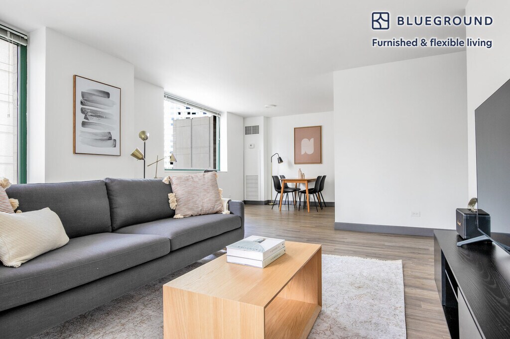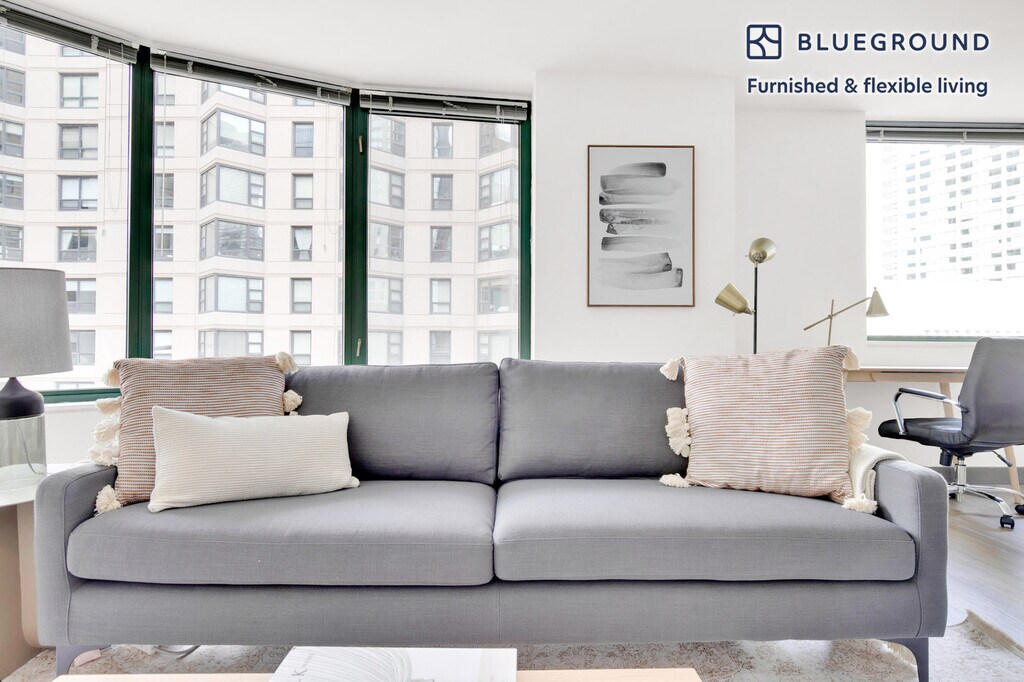 Feel at home wherever you choose to live with Blueground. You’ll love this roomy Streeterville furnished one bedroom apartment with its modern decor, fully equipped kitchen, and exquisite living room with great views. Ideally located, you’re close to all the best that Chicago has to offer! (ID #CHI586) The advertised rate of $3,620/month is the lowest available price, based on a 12 month(s) stay with a move-in date of April 7, 2026. Rates vary depending on the duration of stay, season, and other parameters. For exact pricing and additional pricing components, please visit our website and enter your desired move-in and move-out dates. The rate is applicable when billed upfront; it can be higher if billed in multiple payments. Brokers are welcome to reach out. Were you looking for an unfurnished lease? Try Blueground instead and upgrade from unfurnished to furnished living: - Furnished at rates comparable to unfurnished - No setup or furniture costs - save thousands - Move-in ready - save time, just bring your suitcase Designed with you in mind Thoughtfully designed with bespoke finishes, modern furnishings, and a fully equipped kitchen, you’ll enjoy that “I’m home” feeling with this Blueground apartment. Whether you’re lounging in your spacious living room streaming the latest and greatest entertainment on the smart TV or premium wireless speaker, or getting some well-earned rest on the superior quality mattress with luxury linens, you’ll fall in love with everything this Streeterville apartment has to offer. This apartment also offers in-apartment laundry. Sleeping arrangements King Bed, 70.8in/180cm Amenities Building amenities unique to this one bedroom apartment include an on-site: - BBQ Area - Doorman - Dryer - Elevator - Swimming pool - Washing machine - Lounge - Parking - Pets allowed Arrival and ongoing support The entire apartment is yours to enjoy! Throughout your stay, you’ll have access to our Client Experience team through the Blueground App. You can schedule additional cleanings, submit maintenance requests, and view our neighborhood recommendations with just a few taps. We’ll share all details upon confirmation of your stay. Ideally Located This furnished rental is located in Streeterville, only a 5 minute walk from The Loop. One of the fastest-developing neighborhoods in Chicago, Streeterville extends out into Lake Michigan and attracts a blend of young professionals, students, and tourists. A plethora of amenities and activities exist for every lifestyle. From Navy Pier activities to luxury shopping on Michigan Avenue, it is a walkable community with easy access to entertainment. Other things to note Building amenities may have an extra cost. This Blueground apartment has flexible lease options, allowing you to book it for one month, a year, or more. Pets are welcome, though weight limits and breed restrictions apply and may incur fees. Parking is offered based on availability and is subject to a fee. We take great pride in ensuring every photo displayed is shot in our own units with our actual furnishings. That said, we regularly refresh our decor and furniture arrangement, which may differ from what’s pictured. [SI]