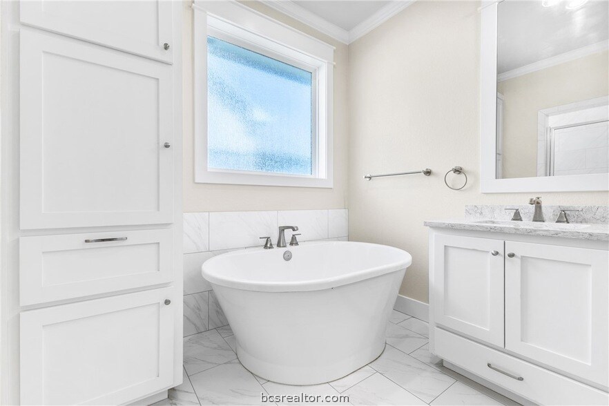 Luxury rental in Castlegate II with an outdoor kitchen and expansive covered patio at 4209 Downton Abbey Ave, College Station 4 bedrooms, 4 full baths + study, 2,763 sq ft, available 7/1/2026 at $3,300/mo (deposit $3,300). Outdoor living is a signature feature with a fully covered back patio set up for dining and lounging, plus an outdoor kitchen built for hosting, all overlooking a fenced yard with sprinkler system (lawn care is tenant responsibility). Inside, the three-way split floorplan offers privacy and oversized rooms with an open-concept living/dining/kitchen anchored by a stone fireplace and vaulted ceiling w/ exposed beam. The kitchen includes quartz counters, stainless appliances, gas cooktop, large island, walk-in pantry, and refrigerator included. A private study with double barn doors adds a true work-from-home space. Primary suite features a resort-style bath with double sinks, soaker tub, enclosed shower, and a large walk-in closet. Utility room includes a sink and washer/dryer connections (tenant to supply washer/dryer). 2+ car garage. Convenient to Tower Point, Costco, and Texas A&M. Pets considered case-by-case; no cats; $500 non-refundable pet fee (intended for one pet). Deed restricted: no more than two unrelated occupants.