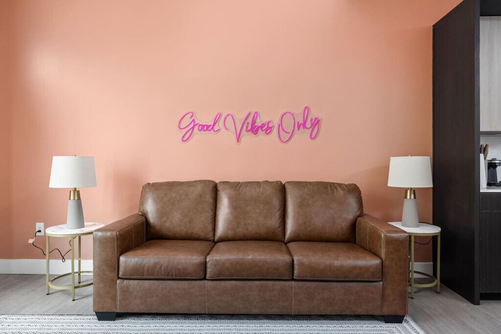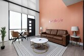 Located in an ultra-luxurious high-rise in downtown Indianapolis, this condo is designed for guests who demand high-quality, convenience, and comfort. Feel at home with unrivaled amenities including free parking, a rooftop pool, an executive lounge with a pool table, a gym, free espresso, and a BBQ area. This luxury urban retreat in downtown Indianapolis epitomizes modern elegance and unparalleled comfort. The studio-style layout with a privacy curtain offers the feel of a 1-bedroom with extra privacy. The modern kitchen is fully equipped for preparing meals, and the condo features downtown views from floor-to-ceiling windows with built-in blinds. Enjoy a memory foam king-size bed and a queen sleeper sofa for additional guests. High-speed Wi-Fi is ideal for remote work or streaming, and a smart TV is available for entertainment. In-unit washer and dryer provide full laundry convenience. Pets are welcome with a $45 cleaning fee per pet. Early check-in or late check-out is available for a fee of $25 or $50, subject to approval. A free parking pass is provided, with a $25 replacement fee for any unreturned or missing pass. The garage has an 8'2" clearance. Located in the vibrant heart of Indianapolis, this condo places you within walking distance or a short drive of the city’s most iconic attractions. Sports venues like Lucas Oil Stadium and Gainbridge Fieldhouse are nearby, as well as cultural institutions such as the Indiana State Museum and the Eiteljorg Museum. Enjoy the performing arts at the Indiana Repertory Theatre or explore the historic sites like the Soldiers' and Sailors' Monument. Shopping and dining districts, including Massachusetts Avenue, are just steps away. Noise detectors are located in the apartment to monitor noise levels, and surveillance cameras monitor common areas. There is a noise curfew from 10 PM to 7 AM on weekdays and 10 PM to 8 AM on weekends, with penalties for violations. Smoking will result in a $500 fine, and parties are strictly prohibited with a $1,000 fine and immediate eviction for violations. Guests must be 21+ to book a reservation, and no entry is allowed for unregistered guests. Checkout requires loading and starting the dishwasher and disposing of trash properly. The condo is equipped with high-speed Wi-Fi, making it ideal for remote work. A co-working space is available in the common areas, providing a comfortable environment for productivity.