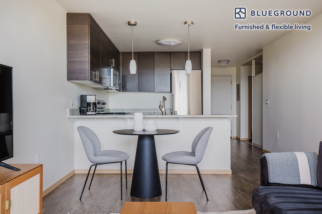 Show up and start living from day one in Seattle with this lovely one bedroom Blueground apartment. You’ll love coming home to this thoughtfully furnished, beautifully designed, and fully equipped Brighton home. (ID #SEA787) The advertised rate of $1,290/month is the lowest available price, based on a 1 month(s) and 27 day(s) stay with a move-in date of January 23, 2026. If you’re looking for a 1-year stay, the rate is $1,630/month. Rates vary depending on the duration of stay, season, and other parameters. For exact pricing and additional pricing components, please visit our website and enter your desired move-in and move-out dates. The rate is applicable when billed upfront; it can be higher if billed in multiple payments. Brokers are welcome to reach out. Were you looking for an unfurnished lease? Try Blueground instead and upgrade from unfurnished to furnished living: - Furnished at rates comparable to unfurnished - No setup or furniture costs - save thousands - Move-in ready - save time, just bring your suitcase Designed with you in mind As with any Blueground apartment, you’ll find a thoughtfully designed space complete with beautiful furniture and a fully equipped kitchen in this one bedroom property. And, thanks to our superior quality mattresses, luxury linens, and towels, you can relax knowing you’ll always feel comfortably at home. When you’re ready for some fun, you can take in the Seattle vibes or bring the entertainment to you with the premium wireless speaker or smart TV. This apartment also offers in-apartment laundry. Sleeping arrangements Queen Bed, 63in/160cm Amenities Building amenities unique to this one bedroom apartment include an on-site: - BBQ Area - Dryer - Elevator - Washing machine - Parking - Pets allowed Arrival and ongoing support The entire apartment is yours to enjoy! Throughout your stay, you’ll have access to our Client Experience team through the Blueground App. You can schedule additional cleanings, submit maintenance requests, and view our neighborhood recommendations with just a few taps. We’ll share all details upon confirmation of your stay. Other things to note Building amenities may have an extra cost. This Blueground apartment has flexible lease options, allowing you to book it for one month, a year, or more. Pets are welcome, though weight limits and breed restrictions apply and may incur fees. Parking is offered based on availability and is subject to a fee. We take great pride in ensuring every photo displayed is shot in our own units with our actual furnishings. That said, we regularly refresh our decor and furniture arrangement, which may differ from what’s pictured. [SI]