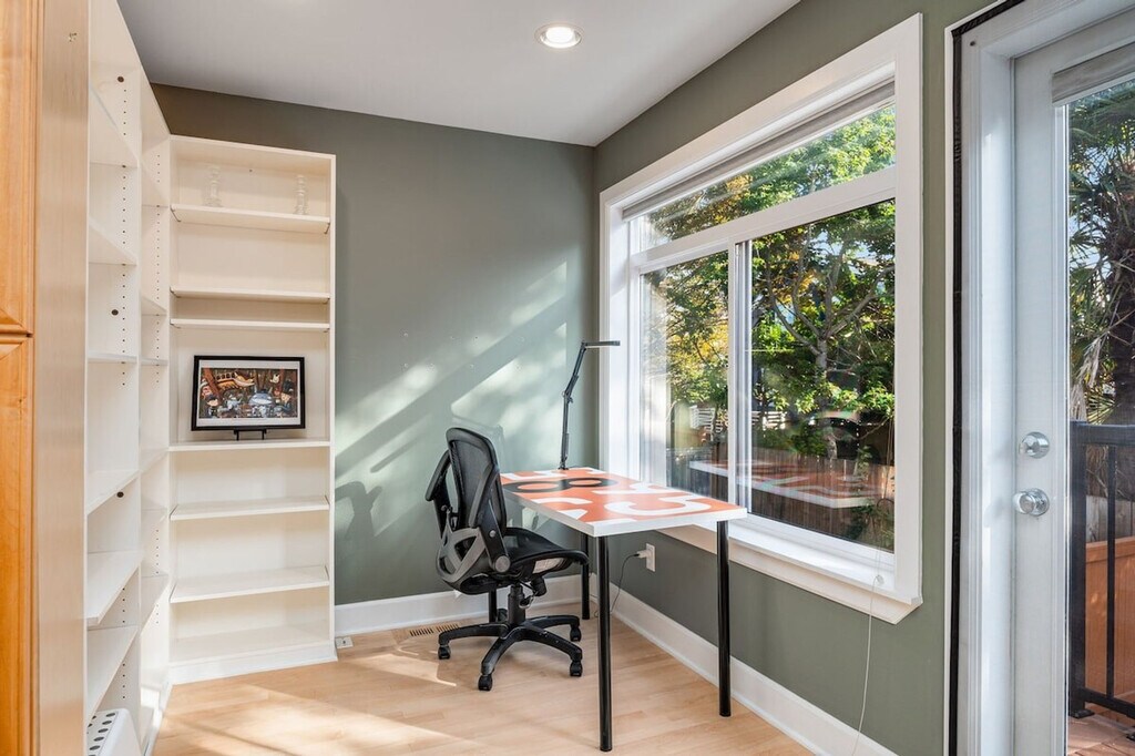 The advertised rate of $8,481/month is the lowest available price, based on a 30 day(s) stay with a move-in date of October 4, 2026. Rates vary depending on the duration of stay, season, and other parameters. For exact pricing and additional pricing components, please visit our website and enter your desired move-in and move-out dates. The rate is applicable when billed upfront; it can be higher if billed in multiple payments. Feel at home in this tastefully decorated and spacious 3-bedroom townhome in the heart of Fremont. This 2200 sqft home is tucked away on a quiet street, yet close to the hustle and bustle of Fremont Ave. This is a 3-story townhome with no steps to the entrance. This home features a fully fenced backyard with a swing and several spacious balconies. The kitchen is fully stocked with kitchen appliances, cookware, silverware, servingware, spices, Keurig coffee and tea. For your convenience, there is an on-site washer and dryer. Enjoy high-quality beds, mattresses, pillows and linens for comfortable sleeping. The home is equipped with portable AC units to beat the summer heat and multiple smart TVs for your streaming needs. There is also a treadmill for working out. Parking is available in the 2-car garage and driveway. Located in Fremont, you'll find quirky cafes, tech offices, yoga studios, a bus line, fabulous eateries, parks and lakes. It's a 10-minute walk to the Woodland Park Zoo and a 4-minute drive to the Fremont Troll, Theo Chocolate, and the Sunday Street Market. Ride-share services are highly recommended for getting around. The home is walkable to local conveniences and bus stops. This is not a pet-friendly home, and unauthorized pets will incur a $500 fine. Strictly no parties or events are allowed, and quiet hours are between 10 pm and 8 am. Smoking or vaping of any kind is prohibited anywhere on the property, including outdoor areas, and digital piracy is not allowed. Shoes are not permitted in the home. Violations will incur a $500 fine per violation. This townhome is not handicap friendly, and guests must be comfortable with stairs as there are multiple stories. Includes two dedicated offices and fast internet, ideal for remote work. Floor Plan: • First Floor: Main entrance; access to 2 car garage. • Mezzanine: Bedroom with queen bed and desk/chair, treadmill, full bath with bathtub. Laundry. • Second Floor: Living room with smart TV, kitchen, dining, office, half bath, large. balcony. • Third Floor: Primary bedroom suite w/king-size bed, smart TV. En-suite bathroom w/shower & tub. Another bedroom w/ queen bed and full bathroom, balcony. [SI]