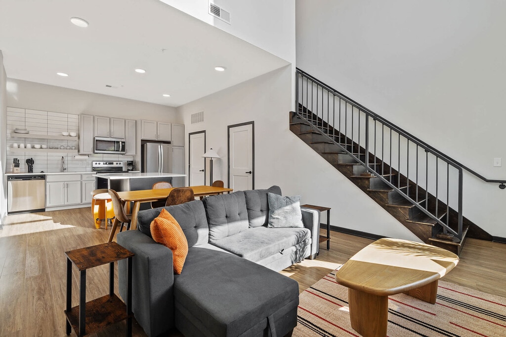 Feel at home in this spacious two-bedroom apartment located in the heart of Mass Ave. This apartment features inviting living areas, a fully equipped kitchen, and a bathroom complete with toiletries. You can also enjoy the resident roof deck, resident clubroom, in-unit washer and dryer, and smart TVs with streaming apps installed. Complimentary coffee is also provided. Located in the historic Lockerbie Square district, this downtown spot offers charming cobblestone streets, 19th-century architecture, and easy access to cultural landmarks like the Athenæum. You're just a short walk from Mass Ave’s vibrant mix of restaurants, bars, and boutiques. The Indiana Convention Center is 0.3 miles away, Lucas Oil Stadium is 0.5 miles away, Old National Centre is 0.6 miles away, and Saint Mary's Catholic Church and the Phoenix Theatre are both 0.6 miles away. Smoking of any kind is not permitted within or outside of the apartment, including balconies, patios, or common and/or parking areas. Any sign of smoking is a violation of the stay agreement, which may result in immediate termination and recovery fees beginning at $500. There is a $200 penalty for removing smoke detectors and a $200 penalty for lost key fobs. No outside guests are allowed without permission. One towel is provided per guest per stay. A valid photo ID is required to complete the booking. Guests must agree to not disturb neighbors at all times during the stay and must observe quiet hours from 9pm-8am each day. Check-in is at 4 PM and check-out is at 11 AM (with a $75/hr late fee).