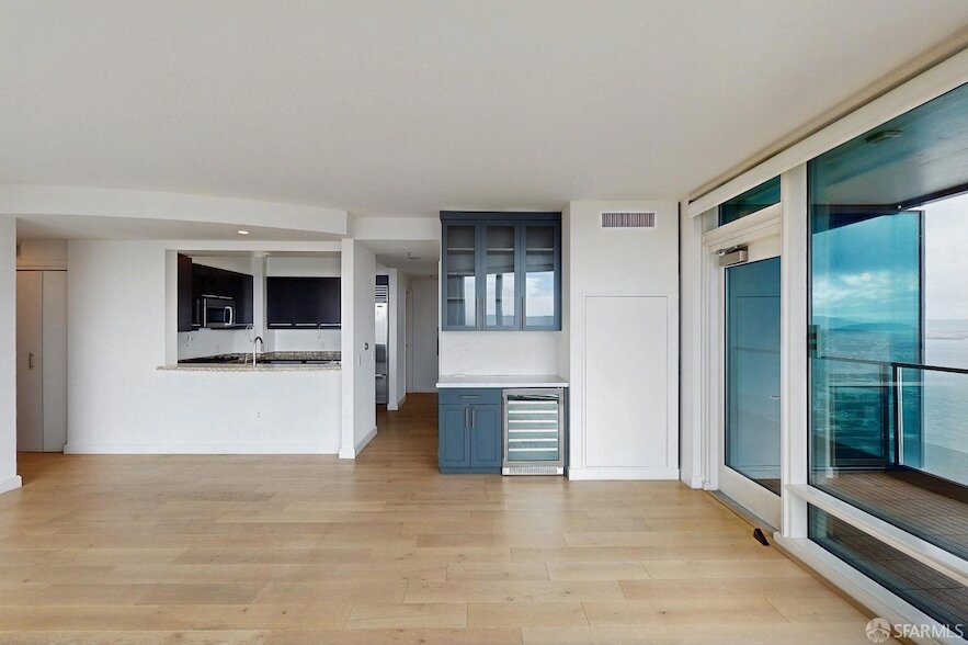 Stunning panoramic Bay and San Francisco views define this sleek southwest corner 2BD/2BA residence, showcasing breathtaking vistas of the Bay, Twin Peaks, Sutro Tower, and the city skyline. A formal entry opens to a spacious living room ideal for entertaining, framed by expansive windows and big water views. The generous primary suite features a walk-in closet and spa-like bath with a double vanity, separate shower, and soaking tub. Enjoy seamless indoor-outdoor living with a private terrace. Thoughtfully updated with new wood floors throughout, smart-home NEST system, modern light fixtures, motorized shades, and custom built-in cabinetry with additional counter space in the living in 2008, One Rincon Hill is a luxury condo complex designed by the architectural firm Solomon, Cordwell, Buenz, and Associates. The building soars to 60 stories and offers panoramic views of downtown, Bay Bridge, Twin Peaks, and Oracle Park. One Rincon combines the comforts of a luxury condo building with state-of-the-art amenities typically found at a world-class resort. Live in the heart of the vibrant Rincon Hill neighborhood, right by South Beach and the Financial District. It's just steps away from the Ferry Building and all the major highways. Google Spear St, Facebook, LinkedIn's SF headquarters offices, the Transbay Terminal, and SF Moma are all within walking distance.