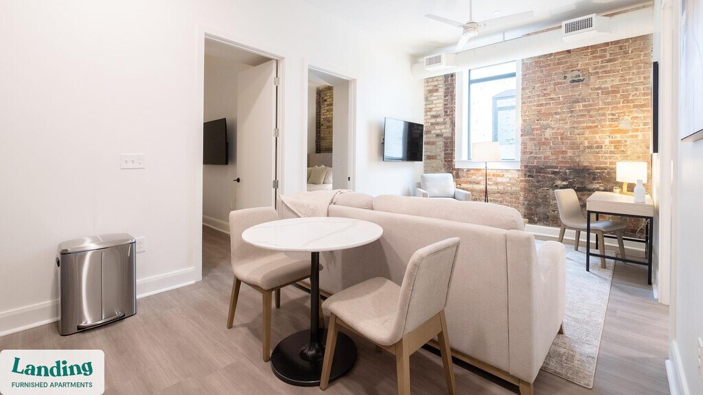 Landing offers flexible lease terms from weeks to months. Please always visit our website or contact us for the latest pricing & availability. Stay longer, save more: 6-Month Minimum base rent: starts at $2080/mo 12-Month Minimum base rent: starts at $1761/mo Landing offers flexible leases across a network of over 35,000 fully-furnished apartments throughout 375+ cities so you can rent on your terms, practically anywhere, and avoid the hassle of paying deposits or application fees. Visit to learn about all the benefits of a Landing membership, see our competitive up-to-date pricing, explore available apartments, take virtual tours, and make reservations online without jumping through traditional rental hoops. Landing's apartments at Landing Midtown are designed for comfortable, easy living, with the ability to stay as long as you like. Experience living with Landing Every apartment is outfitted with all the modern essentials including: custom-designed furnishings, a fully-equipped kitchen with deluxe stainless steel appliances, a gourmet coffee maker, premium linens, Smart TVs, and incredibly fast, reliable internet for working from home. When you live with Landing, you'll enjoy a hassle-free experience with the added benefit of 24/7 access to our dedicated member experience team. Some of the nitty-gritty: a background check and proof of income are required; we're completely smoke-free; bundled utility packages and pricing vary based on length of stay; pet-friendly options available; listed price reflects a 12-month minimum stay.
