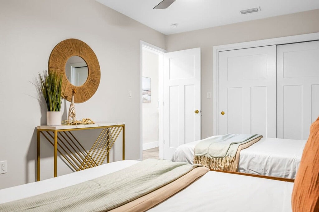 Immerse yourself in sun-kissed bliss at this beautifully designed and updated 2-bedroom, 1-bath beach bungalow in serene Cape Canaveral. With just a short two-block stroll to the golden shores, this coastal retreat offers the perfect escape for beach lovers. You'll love this updated home with its uniquely designed spaces! Step into a world of coastal charm as you enter this thoughtfully designed beach bungalow. The tastefully furnished living area invites you to unwind and relax, while the abundance of natural light creates a warm and inviting ambiance. The fully equipped kitchen is a haven for culinary enthusiasts, boasting stylish countertops, modern appliances, and all the necessary utensils. Share laughter and delicious meals with loved ones around the dining table, creating unforgettable memories. This home also features a brand new washer and dryer. The bungalow features two cozy bedrooms, each adorned with comfortable beds and plush linens. With ample storage space and tasteful decor, you'll find a peaceful sanctuary to rest and recharge after a day of exploring the local attractions. The crisp and clean bathroom offers a rejuvenating shower experience, complete with fresh towels and essential toiletries. Best of all, the bungalow offers a private outdoor patio, where you can embrace the coastal breeze and soak in the sunshine. Whether it's sipping your morning coffee or indulging in a sundowner, this tranquil space is the perfect spot to unwind and soak up the serene surroundings. While we love all furry friends, only dogs are allowed at this property, with a fee of $100 per pet per stay. Nestled in the heart of Cape Canaveral, this beach bungalow ensures you're never far from the action. Just a quick two-block stroll will take you to the pristine sandy shores, where you can indulge in early morning beach walks, bask in the sun, or take a refreshing dip in the sparkling waves. Beyond the beach, you'll discover a charming neighborhood filled with local attractions, vibrant nightlife, and delicious dining options. Explore the nearby Kennedy Space Center, where history and space converge, or embark on a fishing charter to experience the thrill of reeling in the catch of the day. Marvel at the beauty of a Space Coast rocket launch from the beach. For the thrill-seekers, head to nearby Cocoa Beach and ride the waves or engage in exhilarating water sports. Indulge in retail therapy at the Cocoa Beach Pier or savor fresh seafood at the waterfront restaurants. This is also a perfect spot for before and after your cruise out of Port Canaveral. With its unbeatable location, this beach bungalow is the perfect base for your Cape Canaveral adventures, allowing you to experience the best of sun, surf, and local charm. To ensure a comfortable start to your stay, we provide an initial stock of essentials like paper towels, toilet paper, tissues, coffee pods, creamer, sugar, light cleaning supplies, garbage bags, sponges, dish soap, and dishwasher tabs. If you need additional supplies during your stay, please plan to replenish them as needed. Mailbox access is not available for guests. Our digital locks let you arrive and check yourself in, but we’re here if you need us. Message us on the app if you need anything during your stay. For urgent matters, call the number provided. [SI]