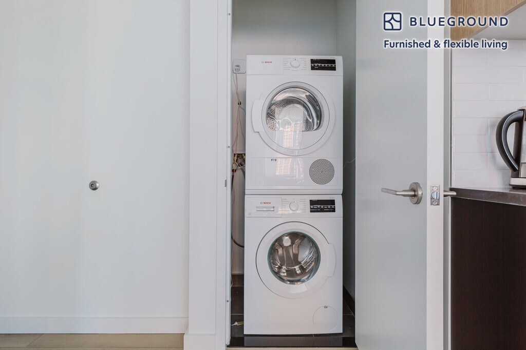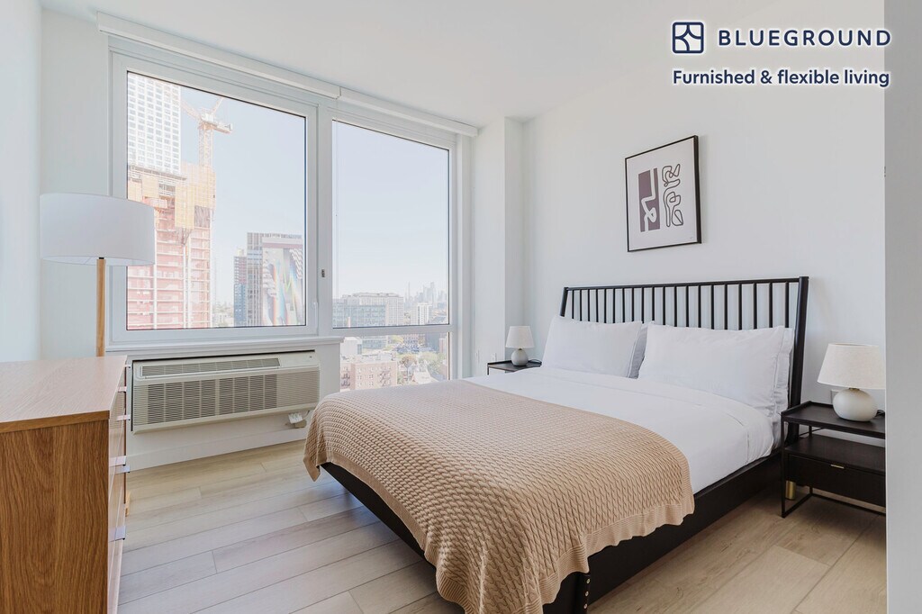 Show up and start living from day one in Jersey City with this spacious one bedroom Blueground apartment. You’ll love coming home to this thoughtfully furnished, beautifully designed, and fully equipped Journal Square home with stunning views over the city. (ID #NYC1579) The advertised rate of $3,680/month is the lowest available price, based on a 12 month(s) stay with a move-in date of May 19, 2026. Rates vary depending on the duration of stay, season, and other parameters. For exact pricing and additional pricing components, please visit our website and enter your desired move-in and move-out dates. The rate is applicable when billed upfront; it can be higher if billed in multiple payments. Brokers are welcome to reach out. Were you looking for an unfurnished lease? Try Blueground instead and upgrade from unfurnished to furnished living: - Furnished at rates comparable to unfurnished - No setup or furniture costs - save thousands - Move-in ready - save time, just bring your suitcase Designed with you in mind Gorgeous furniture, fully equipped kitchen, smart TV, and a premium wireless speaker are just a few of the amenities you’ll find inside this one bedroom apartment. Ideally located in Jersey City, you’ll find a lot to love outside as well. When you’re ready to relax, you’ll be happy to discover every Blueground bedroom comes with superior quality mattresses, luxury linens, and cozy towels. We handle everything so you can simply show up and start living. This apartment also offers in-apartment laundry. Sleeping arrangements Queen Bed, 63in/160cm Amenities Building amenities unique to this one bedroom apartment include an on-site: - Doorman - Dryer - Elevator - Game room - Washing machine - Lounge Arrival and ongoing support The entire apartment is yours to enjoy! Throughout your stay, you’ll have access to our Client Experience team through the Blueground App. You can schedule additional cleanings, submit maintenance requests, and view our neighborhood recommendations with just a few taps. We’ll share all details upon confirmation of your stay. Other things to note Building amenities may have an extra cost. This Blueground apartment has flexible lease options, allowing you to book it for one month, a year, or more. Brokes CYOF. We take great pride in ensuring every photo displayed is shot in our own units with our actual furnishings. That said, we regularly refresh our decor and furniture arrangement, which may differ from what’s pictured.