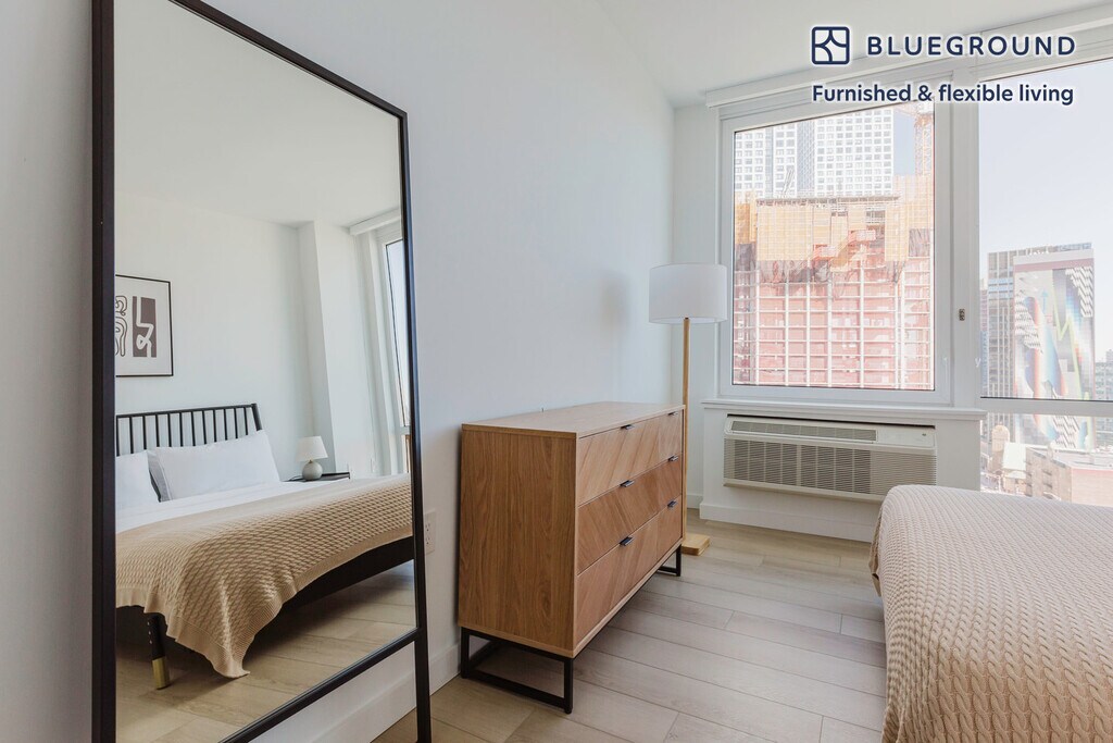 Discover the best of Jersey City, with this one bedroom apartment in Journal Square with high floor views over the city. It’ll be easy to simply show up and start living in this furnished apartment with its fully equipped kitchen, living room, and our dedicated, on-the-ground support. (ID #NYC1580) The advertised rate of $3,550/month is the lowest available price, based on a 12 month(s) stay with a move-in date of February 21, 2026. Rates vary depending on the duration of stay, season, and other parameters. For exact pricing and additional pricing components, please visit our website and enter your desired move-in and move-out dates. The rate is applicable when billed upfront; it can be higher if billed in multiple payments. Brokers are welcome to reach out. Were you looking for an unfurnished lease? Try Blueground instead and upgrade from unfurnished to furnished living: - Furnished at rates comparable to unfurnished - No setup or furniture costs - save thousands - Move-in ready - save time, just bring your suitcase Designed with you in mind As with any Blueground apartment, you’ll find a thoughtfully designed space complete with beautiful furniture and a fully equipped kitchen in this one bedroom property. And, thanks to our superior quality mattresses, luxury linens, and towels, you can relax knowing you’ll always feel comfortably at home. When you’re ready for some fun, you can take in the Jersey City vibes or bring the entertainment to you with the premium wireless speaker or smart TV. This apartment also offers in-apartment laundry. Sleeping arrangements Queen Bed, 63in/160cm Amenities Building amenities unique to this one bedroom apartment include an on-site: - Doorman - Dryer - Elevator - Game room - Washing machine - Lounge Arrival and ongoing support The entire apartment is yours to enjoy! Throughout your stay, you’ll have access to our Client Experience team through the Blueground App. You can schedule additional cleanings, submit maintenance requests, and view our neighborhood recommendations with just a few taps. We’ll share all details upon confirmation of your stay. Other things to note Building amenities may have an extra cost. This Blueground apartment has flexible lease options, allowing you to book it for one month, a year, or more. Brokes CYOF. We take great pride in ensuring every photo displayed is shot in our own units with our actual furnishings. That said, we regularly refresh our decor and furniture arrangement, which may differ from what’s pictured.