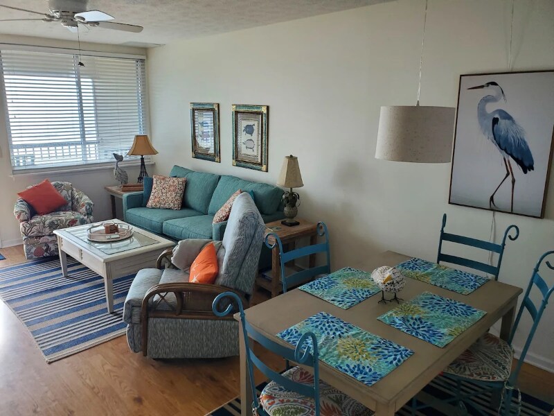Property Id: 2211635 Truly right on the beach. Top Floor (4th level, with elavator). This condo is all about proximity and the full condo-width balcony (25') that immerses you in the ocean's presence. The feel & views are great from the top floor. With coffee on the balcony, watch the sunrise, ocean waves, and sea life unobstructed from your own perch on the beach. An ideal couple's retreat. If you're looking for relaxation, peace and quiet with easy access to everything you might need, you've found the place. Designed for the ultimate chill if you love being near the ocean. Balcony is also covered providing a cooling shade midday onward. Amelia Island and the quaint, historic downtown of Fernandina Beach, is easy-going. Plenty of restaurants and shopping downtown and elsewhere both on and off the island. Nearby Ft. Clinch is great for hike/bike/walk/drive and where you can see Florida's natural beauty.