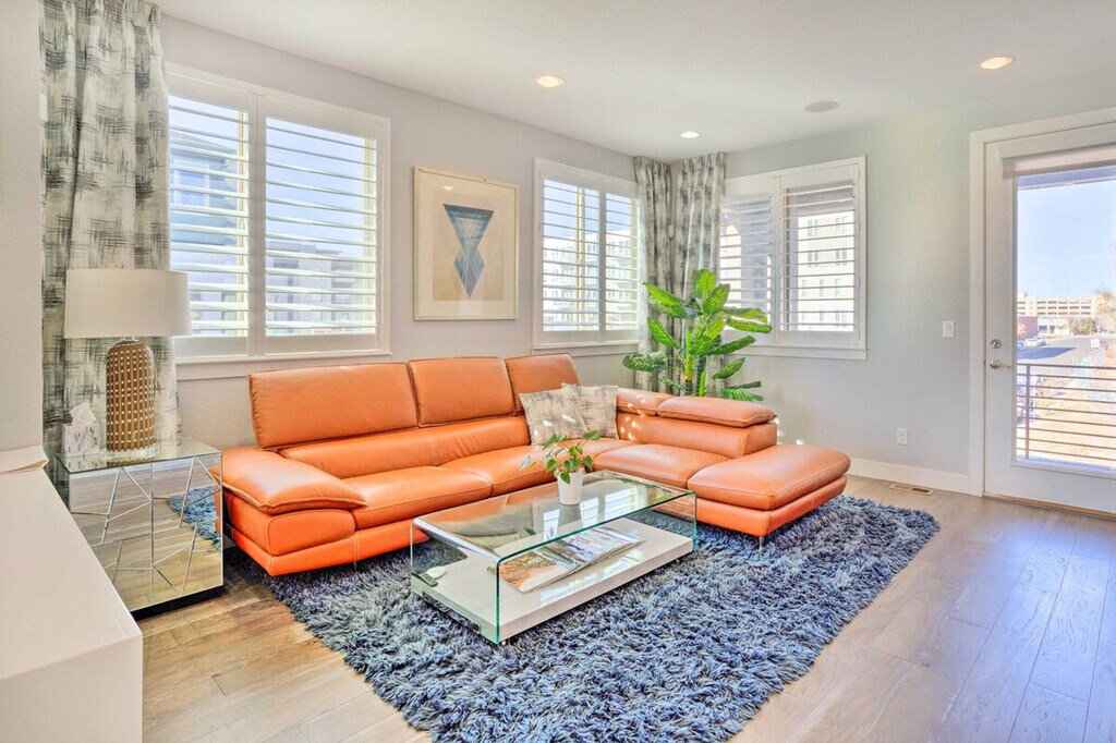 Experience all that The Mile High City has to offer from this 3-bedroom, 2.5-bath Denver vacation rental! Feel at home in this chic townhome, the perfect home base for your next family retreat or friendly getaway. While this property features step-free entry, the living area, kitchen, and bedrooms are located on either the 2nd or 3rd floors and require stairs to access. This apartment features 2 Smart TVs, a fully equipped kitchen, a dining table, a breakfast bar, books, board games, ceiling fans, and a furnished balcony. The kitchen includes dishware, flatware, cooking basics, a full knife set, spices, a Keurig coffee maker, a blender, a Crockpot, a microwave, a toaster oven, a water filter, and an ice maker. You'll also find free Wi-Fi, central air conditioning and heating, linens and towels, an iron and board, laundry detergent, trash bags, paper towels, a hair dryer, and complimentary toiletries. Garage parking is available for 2 vehicles. This apartment is pet-friendly with a $50 fee. Take your pup for a morning stroll through Washington Park, then head to Ball Arena to cheer on the Avalanche! Seeking an outdoor adventure? Pack your hiking gear and take a day trip up to Estes Park. Smoking, events, parties, and large gatherings are prohibited. Includes a laptop workspace with a monitor. [SI]