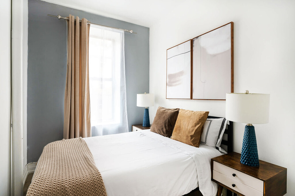 Feel at home in this gorgeous and spacious 2-bedroom apartment located in prime Midtown West. This modern boutique building features video intercoms and a security system, ensuring a comfortable and secure living experience. This apartment is completely newly renovated and newly furnished, designed with great emphasis on comfort and luxury. The kitchen is fully equipped with new appliances, countertops, and cabinets. Enjoy the modern and chic bathroom, spacious and warm living area with a flat-screen TV, queen-size sofa, and designated desk work area. The bedroom features a queen-size luxurious bed and great closet space throughout the apartment. Wi-Fi and cable are available, along with fresh linens, towels, and extra pillows. Located in the perfect spot for work or pleasure, this apartment is surrounded by museums, cafes, delis, restaurants, gyms, bars, pubs, live music venues, and the lovely Hudson Highway boardwalk. Subway station lines are conveniently situated all around, with Central Park, Hell's Kitchen, Rockefeller Center, Times Square, Broadway theaters, 5th Avenue shopping, Time Warner Mall, and the culture-packed Lincoln Center just steps away. New York City's heating season is until the end of May. Beginning around mid-April, window air conditioning will be installed in the apartment. You can request an earlier installation if needed. [SI]