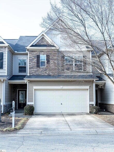 Welcome to your new home in a quiet, well-kept neighborhood just minutes from everything Greenville has to offer. This spacious 3-bedroom, 2.5-bath townhouse offers comfort, functionality, and an ideal layout for everyday living and entertaining. The main level features open living room with a fireplace, hardwood floors, and a smooth flow into the kitchen and dining area. The kitchen is equipped with all new stainless steel appliances and offers ample space for a full dining table, making it perfect for both daily meals and hosting guests. Upstairs, the oversized primary suite is a true retreat, featuring a large walk-in closet and a private bathroom with a soaking tub, separate shower, and dual sinks. Two additional guest bedrooms offer new flooring and share a full bathroom. A brand-new washer and dryer are included for your convenience. Step outside to a cozy, fenced patio with a large umbrella ideal for relaxing, grilling, or enjoying quiet evenings outdoors. The home also includes a two-car garage with two additional parking pads. This townhouse is conveniently located just minutes from downtown Mauldin, Woodruff Road shopping and dining, Bridge Way Station, and major highways, with downtown Greenville only 14 minutes away. Pets are negotiable with owner approval and a pet fee.