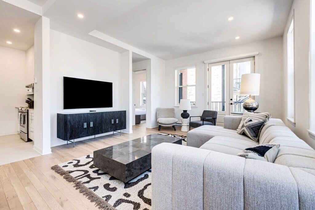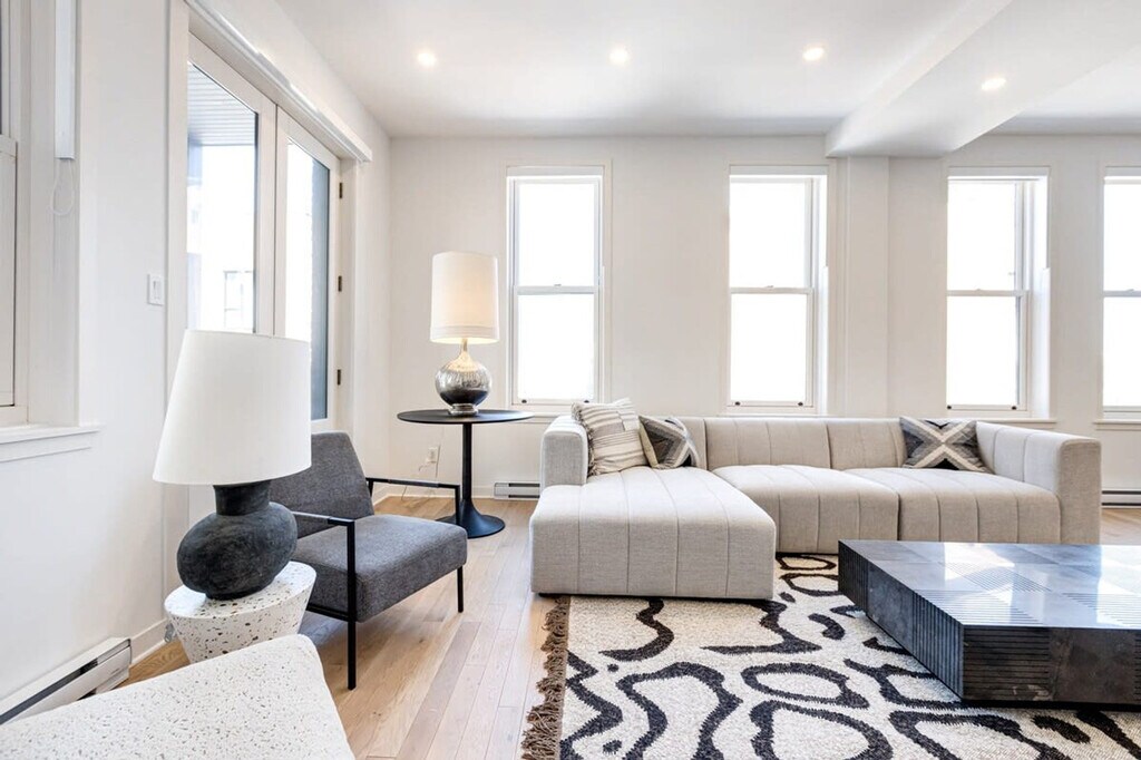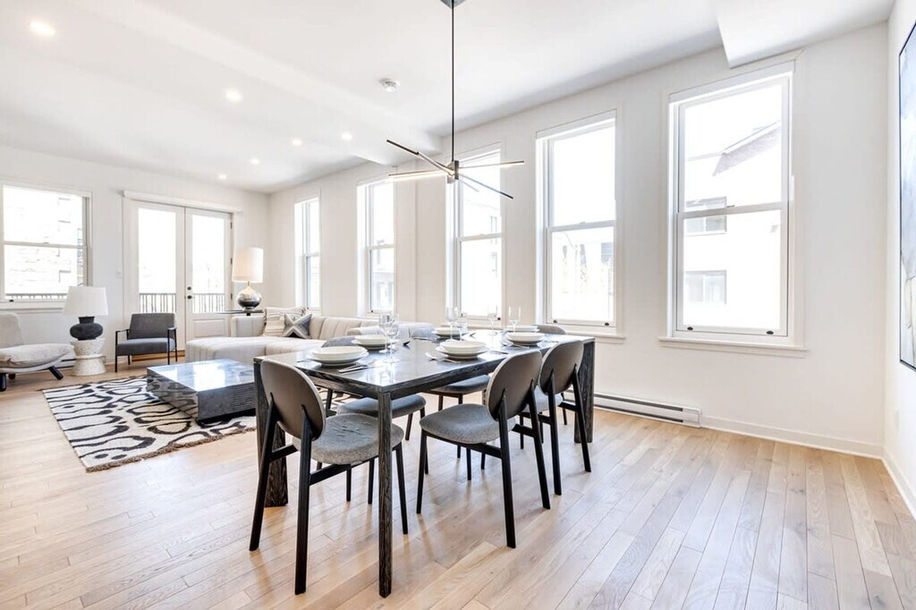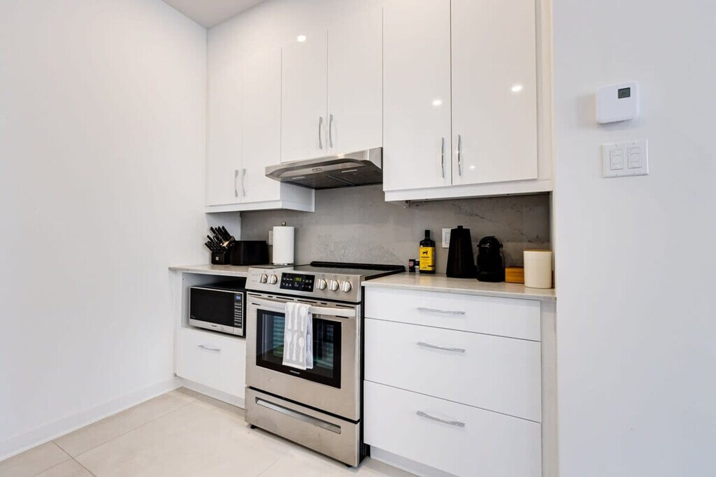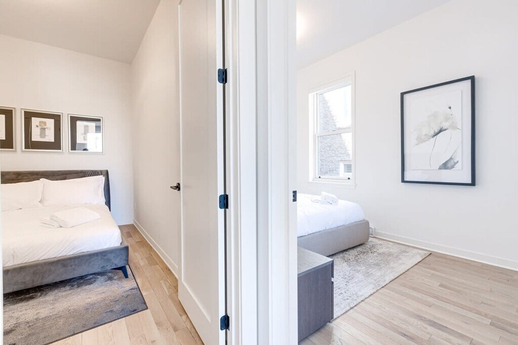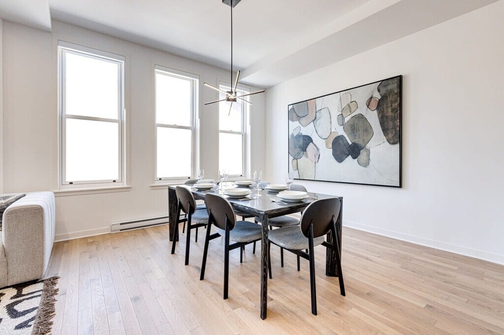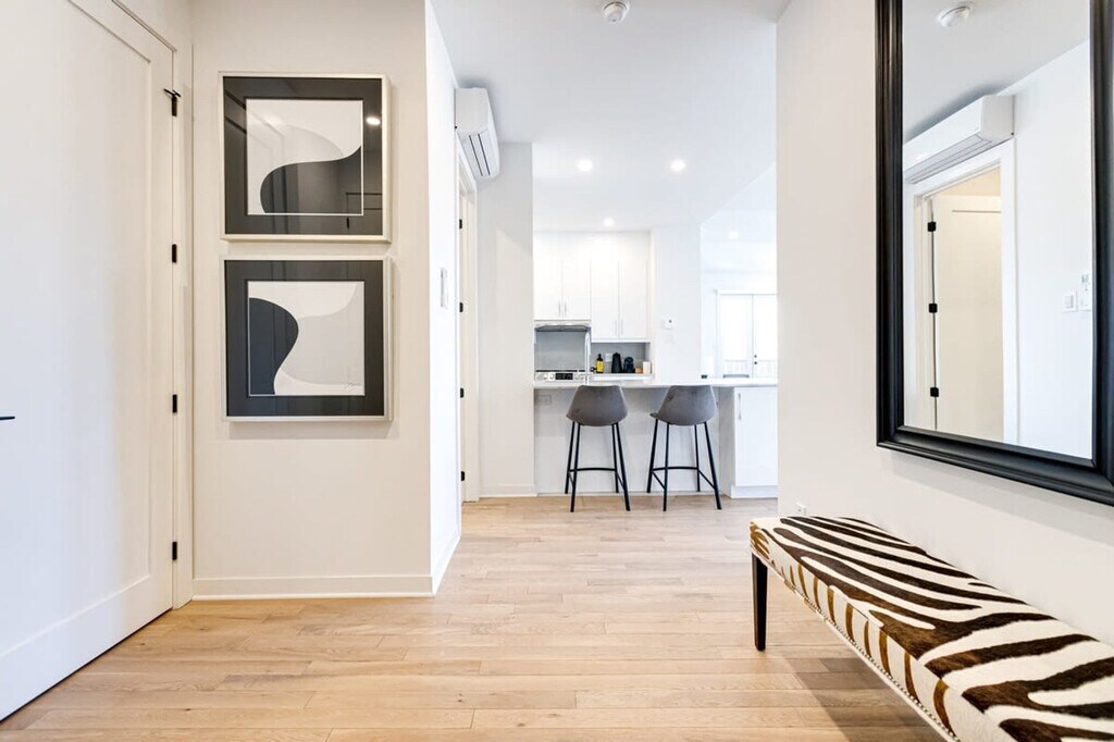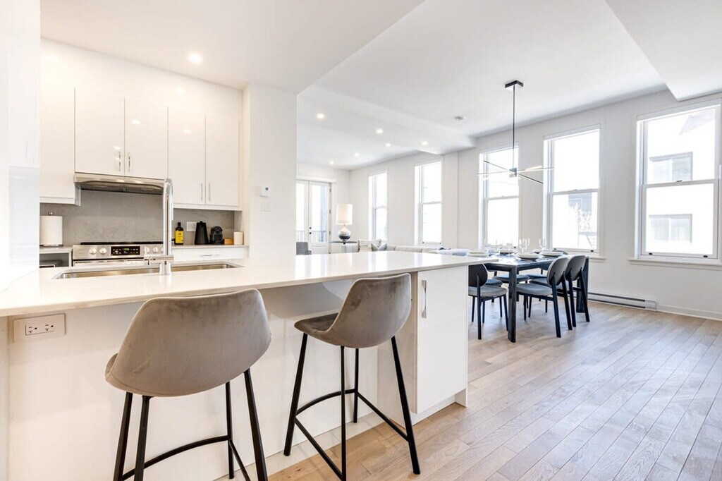 This luxury 2-bedroom apartment is nestled in the heart of The Plateau Mont-Royal, one of Montreal's most desirable neighborhoods. Situated just steps away from the finest restaurants, cafes, and shops, and with easy access to public transportation, this apartment offers a prime location for experiencing the vibrant culture of The Plateau Mont-Royal. You will have to go up one flight of stairs to reach your apartment. This newly renovated 2023 luxury building in Montreal's prime neighborhood combines modern elegance with high-end finishes for those seeking both comfort and style. The bright 2-bedroom apartment features air conditioning, a fully stocked kitchen with an open concept, and in-unit laundry. Pets may be accepted at our discretion for a pet fee. A baby crib is available for an additional fee, with limited quantities available. Plateau Mont-Royal is a vibrant and trendy neighborhood known for its bohemian vibe and colorful architecture. The area is home to a variety of shops, restaurants, bars, and cafes, as well as beautiful parks and green spaces. The apartment is across the street from Mount Royal Mountain, a 1-minute walk to Jeanne-Mance Park, and a 12-minute walk to Mont-Royal Metro Station. It is also a 10-minute transport to downtown Montreal and a 15-minute transport to Old Montreal. The neighborhood's thriving arts scene and unique architecture make it a must-visit destination. You must fill out the check-in form prior to your arrival. The building is equipped with security cameras in the common area hallways, stairwells, and entrances to ensure the safety of all tenants. All guests must adhere to building policies, rules, and general maintenance requirements. Quiet hours are between 22:00 and 8:00.