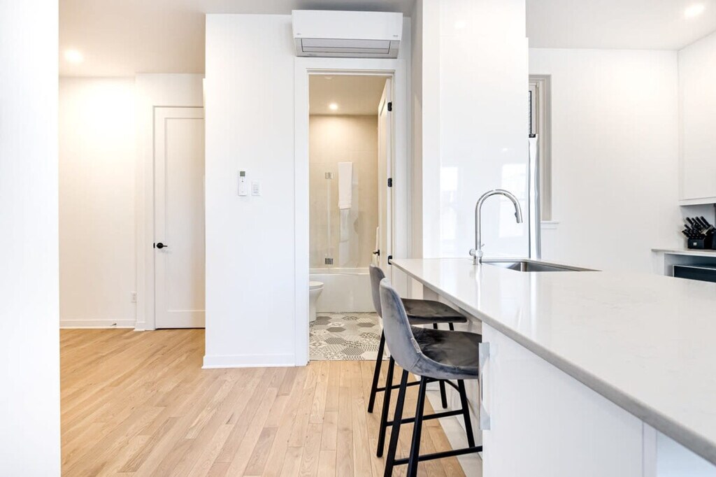 This luxury 1-bedroom apartment is located in The Plateau Mont-Royal, one of Montreal's most desirable neighborhoods. Situated just steps away from some of the best restaurants, cafes, and shops in the area, it offers easy access to public transportation, making it convenient to explore the rest of Montreal. With its prime location and luxurious amenities, this apartment is the perfect spot for anyone looking to experience the vibrant culture of The Plateau Mont-Royal and Montreal. You will have to go up one flight of stairs to reach your apartment. This newly renovated 2023 luxury building in Montreal's prime neighborhood combines modern elegance with high-end finishes for those seeking both comfort and style. The bright 1-bedroom apartment features a prime location, AC, a fully stocked kitchen with an open concept, and in-unit laundry. Pets may be accepted at our discretion for a pet fee. A baby crib is available for an additional fee, with limited quantities available. The apartment is within walking distance to many shops, restaurants, bars, and cafes. It is located across the street from Mount Royal Mountain, a 1-minute walk to the famous Jeanne-Mance Park, and a 12-minute walk to Mont-Royal Metro Station. It offers a 10-minute transport to downtown Montreal and Old Montreal, and is 22 minutes to/from the airport. Public transportation options include buses, metro, taxi, and bike rental, with a grocery store just a 3-minute walk away. All guests must adhere to building policies, rules, and general maintenance requirements. The building is equipped with security cameras in the common area hallways, stairwells, and entrances. Quiet hours are between 22:00 and 8:00. You must fill out the check-in form prior to your arrival.