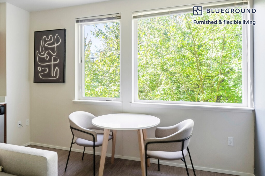 Feel at home wherever you choose to live with Blueground. You’ll love this beautiful University District furnished one bedroom apartment with its modern decor, fully equipped kitchen, and cheery living room. Ideally located, you’re close to all the best that Seattle has to offer! (ID #SEA913) The advertised rate of $1,360/month is the lowest available price, based on a 2 month(s) and 1 day(s) stay with a move-in date of October 28, 2025. If you’re looking for a 1-year stay, the rate is $1,920/month. Rates vary depending on the duration of stay, season, and other parameters. For exact pricing and additional pricing components, please visit our website and enter your desired move-in and move-out dates. The rate is applicable when billed upfront; it can be higher if billed in multiple payments. Brokers are welcome to reach out. Were you looking for an unfurnished lease? Try Blueground instead and upgrade from unfurnished to furnished living: - Furnished at rates comparable to unfurnished - No setup or furniture costs - save thousands - Move-in ready - save time, just bring your suitcase Designed with you in mind Gorgeous furniture, fully equipped kitchen, smart TV, and a premium wireless speaker are just a few of the amenities you’ll find inside this one bedroom apartment. Ideally located in Seattle, you’ll find a lot to love outside as well. When you’re ready to relax, you’ll be happy to discover every Blueground bedroom comes with superior quality mattresses, luxury linens, and cozy towels. We handle everything so you can simply show up and start living. Sleeping arrangements Queen Bed, 63in/160cm Amenities Building amenities unique to this one bedroom apartment include an on-site: - Elevator - Pets allowed Arrival and ongoing support The entire apartment is yours to enjoy! Throughout your stay, you’ll have access to our Client Experience team through the Blueground App. You can schedule additional cleanings, submit maintenance requests, and view our neighborhood recommendations with just a few taps. We’ll share all details upon confirmation of your stay. Ideally Located This furnished apartment is located in the University District (the U District), a relaxed area with casual hangouts. The University of Washington is located here and the large, leafy campus includes an art gallery and the Burke Museum of Natural History and Culture. The Husky Stadium draws in the city’s lovers of college football. The neighborhood’s main thoroughfare is University Way, better known as The Ave. All sorts of shops, cafes, and restaurants line the street, catering to students and young professionals. To access the rest of the city, simply hop on Seattle Metro Route 49. Other things to note Building amenities may have an extra cost. This Blueground apartment has flexible lease options, allowing you to book it for one month, a year, or more. Pets are welcome, though weight limits and breed restrictions apply and may incur fees. We take great pride in ensuring every photo displayed is shot in our own units with our actual furnishings. That said, we regularly refresh our decor and furniture arrangement, which may differ from what’s pictured.