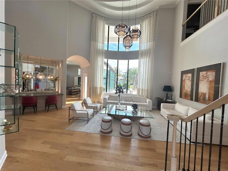 Welcome to Casabella at Windermere, a private gated community where Spanish-inspired architecture meets modern luxury. This solar-powered estate offers 5 bedrooms, 6.5 bathrooms, and nearly an acre of beautifully landscaped grounds. Designed for a turnkey lifestyle, the home features hardwood floors, soaring ceilings, and high-quality finishes throughout. The gourmet kitchen includes KitchenAid stainless steel appliances, granite countertops, and a gas range, opening seamlessly to expansive living and dining areas with a full wet bar.The oversized first-floor primary suite includes a private balcony overlooking the pool and lake, complemented by a secondary master suite upstairs and three additional spacious bedrooms. An executive office and a converted garage with media/game room provide versatile living options.Outdoor living is highlighted by an infinity-edge pool, hot tub, firepit, multiple lounge areas, and a glass-enclosed lanai with Viking summer kitchen and dining space. The fully fenced backyard ensures privacy while enhancing the resort-style setting.Conveniently situated in a private Windermere location with easy access to Winter Garden, CR-535, I-4, and world-class dining, golf, and attractions. Furnishings are optional, offering added flexibility for a truly turnkey opportunity in one of Central Florida s premier luxury neighborhoods.