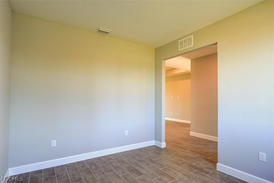 Situated in a desirable NW neighborhood, surrounded by Gulf Access canals. Come see this beautiful 4-bedroom w/Den, 2-bathroom 2 Car garage house before it's too late! Upon entering, you'll immediately notice the attention to detail. The heart of the home is the great room, which is flooded with natural light with impact windows and glass sliders that lead to the extended under-truss lanai area. The charming kitchen has ample cabinet space, stainless steel appliances, pantry, Quartz counter tops and a breakfast bar. Den that can be used a formal Dinig space or a great home office or 5th bedroom. The primary suite includes transom window, tray ceiling feature and the primary bath is spacious with double sinks Quartz countertops and spacious shower with frameless enclosure, double walk-in closets. Wood Plank Tile throughout the entire including the bedrooms. The three additional bedrooms share a guest bathroom with a tub/shower combo.2 car garage to store all the toys. The exterior of the home includes a paver driveway & walkways along with sprinkler system upgraded landscaping. Other features that come with the home include paver driveway and lanai. Close to Schools, Shopping, amenities and many Parks, and recreational areas. Located in the heart of NW Cape Coral.