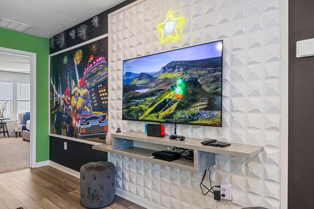 Ignite your Disney dream vacation in this spacious, luxury 5-bedroom villa in Davenport, FL. Sleeping 10 comfortably with 5 baths and 7 plush beds in individually themed rooms, this villa offers a private pool, dedicated workspace, and gym. Its proximity to Disney's major theme parks and terrific dining spots enhances your holiday experience this fall season, making it perfect for big families and groups. Step into a magical realm of luxury and whimsy in this lavish 5-bedroom villa, nestled in the coveted Windsor Island of Davenport, Florida. Each bedroom in this resort-style home unfolds into a whimsical universe, accommodating 10 guests amidst thoughtfully created SpongeBob and Harry Potter themed rooms. Each room offers an intimate retreat boasting comfy bedding and a private bathroom. A dedicated workspace and gym cater to guests who wish to stay on their productivity and fitness routines during their holiday. Unleash your culinary skills in the grand, fully equipped kitchen, complete with modern fittings and fixtures. Watch over your kids splashing in the sparkling private pool while preparing family meals. The outdoor BBQ grill is a delight too, allowing you to grill up a sumptuous dinner and enjoy a captivating Florida evening beside the pool. Your comfort is our utmost priority. Free, fast Wi-Fi ensures you stay connected for work or entertainment. Other amenities include iron, hangers, dryer, washer, TV, air conditioning, heating, essentials, free street parking, and a sophisticated smart lock for ease of entry. Luxuriate in the soothing charm of the spacious living room, relax by the dazzling private pool under Orlando’s balmy skies, or spark a feast on the BBQ grill. This property becomes your home with this enchanting sojourn! Pool heating in November is complimentary, making for warm, delightful dips under the Florida sun. Located within the gates of the world-renowned Windsor Island, venturing out places you minutes away from the magical world of Disney. Imagine a fun-filled day at the Animal Kingdom, Magic Kingdom Park, Hollywood Studios, Walt Disney World Resort, or Epcot, all a stone's throw away from this villa. Dine out in Davenport's exquisite restaurants, from the fine dining at Victoria & Albert’s to the seafood heaven that is Citricos. No smoking, pets, or parties are allowed. Quiet hours are between 21:00 and 9:00. Be courteous to the homes and guests around you and be conscious of damage and leaving the AC on when the back patio door is open. A hairdryer is not available, but with everything else at your fingertips, you're bound to have an unforgettable stay. [SI]