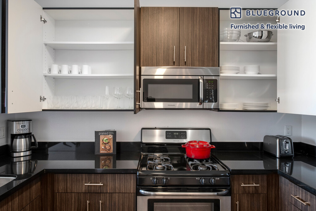 Discover the best of Los Angeles, with this one bedroom apartment in Miracle Mile with balcony views over the city. It’ll be easy to simply show up and start living in this furnished apartment with its fully equipped kitchen, living room, and our dedicated, on-the-ground support. (ID #LAX79) The advertised rate of $2,360/month is the lowest available price, based on a 6 month(s) and 14 day(s) stay with a move-in date of September 4, 2026. If you’re looking for a 1-year stay, the rate is $2,530/month. Rates vary depending on the duration of stay, season, and other parameters. For exact pricing and additional pricing components, please visit our website and enter your desired move-in and move-out dates. The rate is applicable when billed upfront; it can be higher if billed in multiple payments. Brokers are welcome to reach out. Were you looking for an unfurnished lease? Try Blueground instead and upgrade from unfurnished to furnished living: - Furnished at rates comparable to unfurnished - No setup or furniture costs - save thousands - Move-in ready - save time, just bring your suitcase Designed with you in mind Thoughtfully designed with bespoke finishes, modern furnishings, and a fully equipped kitchen, you’ll enjoy that “I’m home” feeling with this Blueground apartment. Whether you’re lounging in your sophisticated living room streaming the latest and greatest entertainment on the smart TV or premium wireless speaker, or getting some well-earned rest on the superior quality mattress with luxury linens, you’ll fall in love with everything this Miracle Mile apartment has to offer. This apartment also offers in-floor laundry. Sleeping arrangements Queen Bed, 63in/160cm Amenities Building amenities unique to this one bedroom apartment include an on-site: - BBQ Area - Dryer of floor - Elevator - Washing machine on floor - Parking - Pets allowed Arrival and ongoing support The entire apartment is yours to enjoy! Throughout your stay, you’ll have access to our Client Experience team through the Blueground App. You can schedule additional cleanings, submit maintenance requests, and view our neighborhood recommendations with just a few taps. We’ll share all details upon confirmation of your stay. Other things to note Building amenities may have an extra cost. This Blueground apartment has flexible lease options, allowing you to book it for one month, a year, or more. Pets are welcome, though weight limits and breed restrictions apply and may incur fees. Parking is offered based on availability and is subject to a fee. We take great pride in ensuring every photo displayed is shot in our own units with our actual furnishings. That said, we regularly refresh our decor and furniture arrangement, which may differ from what’s pictured.