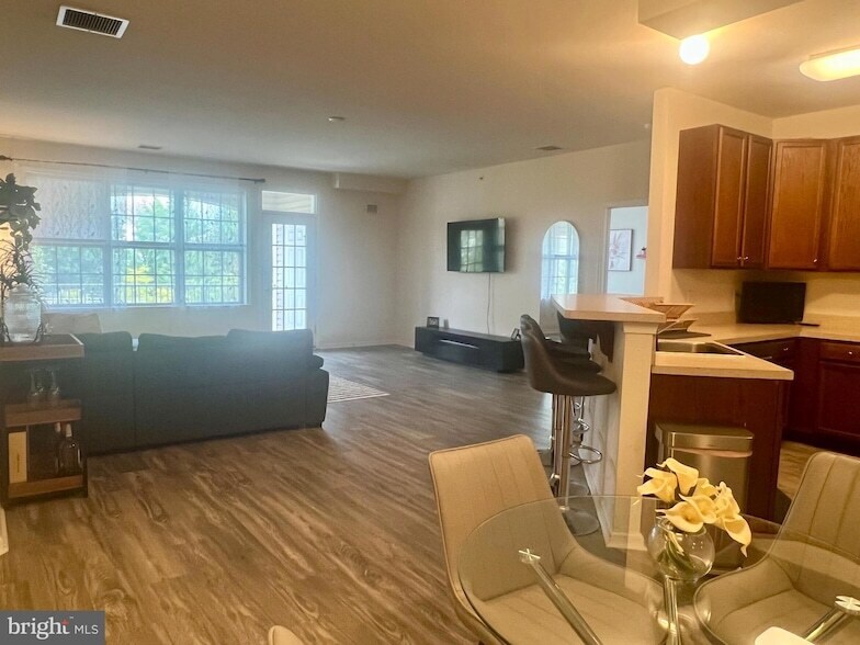 You've found your place to call home! With a perfect balance of style, comfort, and functionality. This elegant top-floor condo showcases a blend of modern luxury and timeless design within its expansive 1,510 square feet. Featuring two generously sized bedrooms and two full bathrooms, it epitomizes refined living.Step inside to discover the grandeur of 9-foot ceilings and an open floor plan that seamlessly connects the formal dining room with the inviting living space. The newly installed LVP flooring adds a touch of modern elegance, complementing the updated kitchen, which boasts a fresh suite of high-end appliances, including a new fridge freezer, dishwasher, oven, and microwave.The expansive primary bedroom suite offers a serene retreat with spacious walk-in closet, and en-suite bathroom featuring double vanity sinks. Additional conveniences include a laundry area with washing machine (new) and dryer, centralized air conditioning, and an intercom system for added security and ease.For those seeking additional comfort and style, this home may be leased furnished for an extra $150 per month. Enjoy the comforts of a newly installed HVAC system and thermostat, ensuring year-round comfort.Community facilities include outdoor pool, gym, and tot lot.