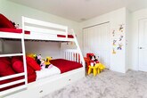 Enjoy a chic and comfortable stay at this 4-bedroom townhome in Storey Lake, perfect for up to 11 guests. Designed with style and fun in mind, it features a private heatable pool and two themed bedrooms—Princess and Mickey—that everyone will love. With a fully equipped kitchen, spacious living area, and great resort amenities, this home combines smart design, comfort, and playful touches for a truly unforgettable getaway. Step into a world of chic design, comfort, and fun in this stylish 4-bedroom townhome. From the moment you arrive, you’ll be drawn to the inviting atmosphere and thoughtful touches throughout. The spacious, beautifully designed living area flows into a fully equipped kitchen, perfect for cooking, dining, and gathering with family and friends. Outside, a private heatable pool offers the ultimate spot to relax and enjoy sunny afternoons. The highlight of this home is its two themed bedrooms, created with creativity and charm to delight guests of all ages. Discover the enchanting Princess room, where every detail feels magical, or the Mickey Mouse room, bursting with playful colors and whimsical design. Sleeping arrangements include: Bedroom 1 (1st Floor): King bed with private bathroom, Bedroom 2 (2nd Floor): Master suite with king bed and ensuite bathroom, Bedroom 3 (2nd Floor): Mickey-themed room with a bunk bed (double + single) and trundle single bed, Bedroom 4 (2nd Floor): Princess-themed room with one double and one single bed. Bedrooms 3 and 4 share a full bathroom. For added convenience, the home offers an in-house laundry with washer and dryer, complimentary Wi-Fi, free parking, and a welcome kit with basic bathroom and kitchen supplies (replenishment not included). Pool heating and BBQ grill use are available as paid optional services. Every detail has been curated to combine chic design, cozy comfort, and playful fun, making this the perfect getaway for families and friends to create unforgettable memories. Pool heating and BBQ grill use are available as paid optional services. Storey Lake Resort has the perfect location just 10 minutes from all major attractions and theme parks in Orlando, including Walt Disney World, Universal Resort, and Sea World. You will find fantastic resort amenities for the whole family to enjoy with a tiki bar, a resort-style pool with slides and lazy river, sports court, mini-golf, kayak, and fitness center. There are 2 clubs inside the property, one of them with a themed pirate pool that kids will love is just walking distance from the house. Located just off Osceola Parkway, the resort has easy access to restaurants, shopping, and supermarkets, everything with just a 5-minute drive distance. Quiet hours are between 22:00 and 08:00. A detailed digital guide with all the essential information you’ll need during your stay, including house details and local recommendations, is provided. Our team is available 24/7, so if you need any assistance or have questions at any time, we’re just a message away.