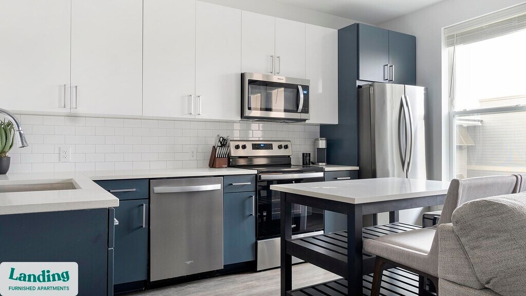 Landing offers flexible lease terms from weeks to months. Please always visit our website or contact us for the latest pricing & availability. Stay longer, save more: 6-Month Minimum base rent: starts at $1600/mo 12-Month Minimum base rent: starts at $1641/mo Landing offers flexible leases across a network of over 35,000 fully-furnished apartments throughout 375+ cities so you can rent on your terms, practically anywhere, and avoid the hassle of paying deposits or application fees. Visit to learn about all the benefits of a Landing membership, see our competitive up-to-date pricing, explore available apartments, take virtual tours, and make reservations online without jumping through traditional rental hoops. Landing's apartments at The Fieldhouse are designed for comfortable, easy living, with the ability to stay as long as you like. Experience living with Landing Every apartment is outfitted with all the modern essentials including: custom-designed furnishings, a fully-equipped kitchen with deluxe stainless steel appliances, a gourmet coffee maker, premium linens, Smart TVs, and incredibly fast, reliable internet for working from home. When you live with Landing, you'll enjoy a hassle-free experience with the added benefit of 24/7 access to our dedicated member experience team. Some of the nitty-gritty: a background check and proof of income are required; we're completely smoke-free; bundled utility packages and pricing vary based on length of stay; pet-friendly options available; listed price reflects a 12-month minimum stay.