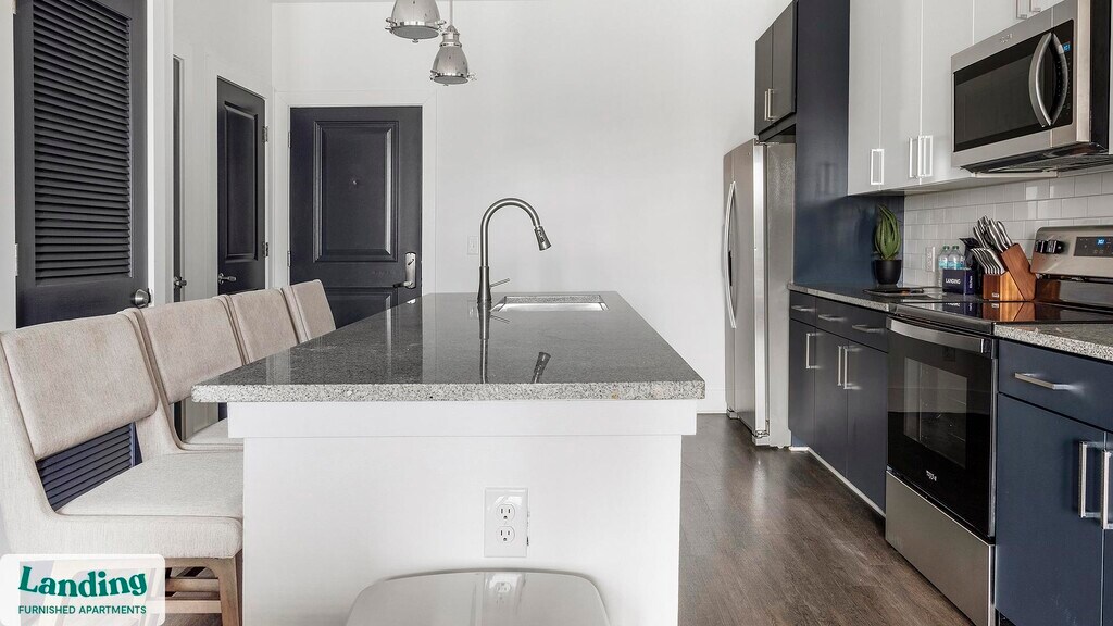 Landing offers flexible lease terms from weeks to months. Please always visit our website or contact us for the latest pricing & availability. Stay longer, save more: 6-Month Minimum base rent: starts at $2500/mo 12-Month Minimum base rent: starts at $2528/mo Landing offers flexible leases across a network of over 35,000 fully-furnished apartments throughout 375+ cities so you can rent on your terms, practically anywhere, and avoid the hassle of paying deposits or application fees. Visit to learn about all the benefits of a Landing membership, see our competitive up-to-date pricing, explore available apartments, take virtual tours, and make reservations online without jumping through traditional rental hoops. Landing's apartments at The Fieldhouse are designed for comfortable, easy living, with the ability to stay as long as you like. Experience living with Landing Every apartment is outfitted with all the modern essentials including: custom-designed furnishings, a fully-equipped kitchen with deluxe stainless steel appliances, a gourmet coffee maker, premium linens, Smart TVs, and incredibly fast, reliable internet for working from home. When you live with Landing, you'll enjoy a hassle-free experience with the added benefit of 24/7 access to our dedicated member experience team. Some of the nitty-gritty: a background check and proof of income are required; we're completely smoke-free; bundled utility packages and pricing vary based on length of stay; pet-friendly options available; listed price reflects a 12-month minimum stay.