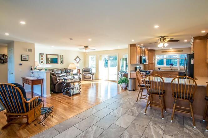 Property Id: 2206217 Contemporary Open Concept Ranch situated on a beautiful lot surrounded by rock walls, acres of landscaping, and set off the road for privacy. There is paved driveway to the home and detached 2 car heated garage. Enter the home through the heated and finished attached 2 car garage for direct entry to the mudroom/laundry to the kitchen. There is another entrance from the garage directly into the kitchen or the basement. The bright and cheery home welcomes you into the kitchen with maple cabinetry with quartz counter tops and tiled floors. There is separate dining area with lots of large windows to let in the natural light. The living room with hardwood floors has direct access to a large deck in the rear along with a new salt water hot tub. The home has been superbly insulated. This home is centrally located to Stone Mountain Art Center, Fryeburg Airport, lakes and mountains for all 4 season activities, Minutes to North Conway, NH, and the ''renown'' Fryeburg Academy School District!