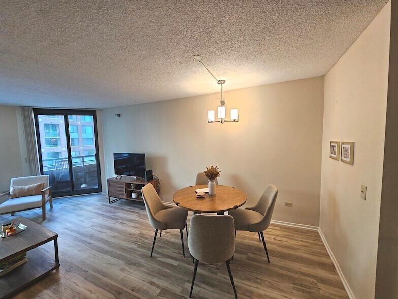 Spacious and Stylish One-Bedroom at CityView -Available December 16. Welcome home to this bright and inviting one-bedroom residence in the highly sought-after CityView condominium community in Streeterville. The expansive living and dining area offers a light, open feel with beautiful hardwood floors and a wall of windows that flood the space with natural light. Step onto your private balcony-perfect for morning coffee, evening relaxation, or catching a glimpse of seasonal Navy Pier fireworks. The well-appointed kitchen features abundant cabinetry, generous counter space, and a complete suite of stainless-steel appliances-ideal for everyday living or easy entertaining. The oversized primary suite comfortably accommodates a king-size bed and a dedicated desk or sitting area. The primary bedroom also features hardwood floors, creating a warm, cohesive flow throughout the home. Two large closets offer excellent storage, and the adjacent full bath includes an oversized vanity and tub/shower combination. Enjoy peaceful north and east views overlooking the building's beautifully landscaped courtyard and fountain. CityView is a professionally managed, full-amenity building offering: 24-hour door staff Fitness center Library/business lounge Sundeck with grilling stations Beautiful, landscaped courtyard with fountain On-site dry cleaning and laundry room Bike storage Prime Streeterville location just steps from Target, Whole Foods, Walgreens, Northwestern Medical Campus & Law School, Riverwalk, Michigan Avenue, AMC Theatre, the lakefront, beaches, restaurants, and public transit. Rental parking is available from another owner in the building. Available for move-in December 16th.