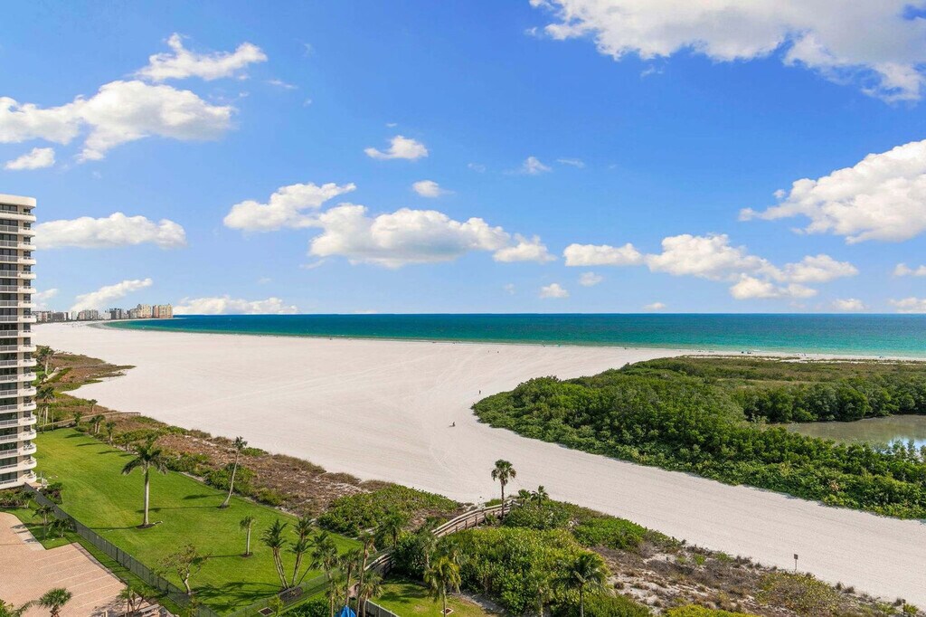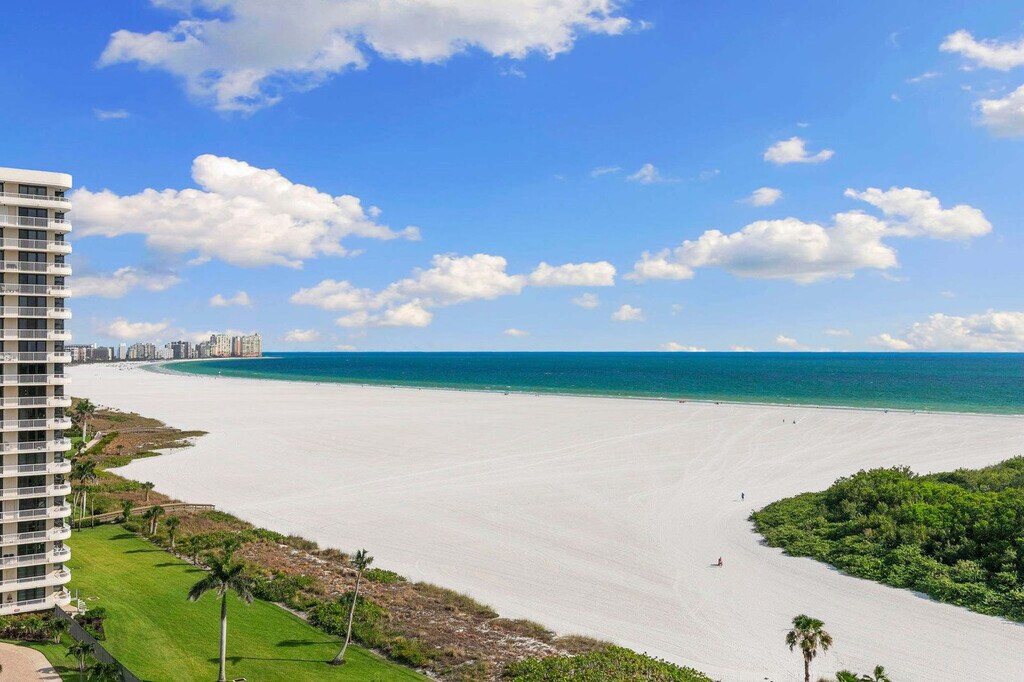 WEEKLY RENTAL AVAILABLE FOR THE FOLLOWING DATES AND RATES: AVAILABLE MARCH 8,2026 $2,520.00 PER WEEK. Vacation in luxury at this completely renovated 2 bedroom,2 bath condo on Marco Island's Tiger-tail Beach with spectacular 18th floor views of the Gulf of Mexico,the beach and beachside pool. This unit sleeps six comfortably and offers a spacious great room floor plan,dining area with breakfast bar,a beautiful kitchen with shaker cabinets and quartz counter tops,split bedrooms,updated baths and a large balcony. The building's common areas and hallways have also been remodeled. South Seas Towers amenities include guard gated entry,convenient garage parking,beach access,available boat slips,kayak storage,tennis and pickleball courts,exercise room,heated pool,picnic area,barbeque grills,shuffleboard,extra storage,laundry and on-site management.