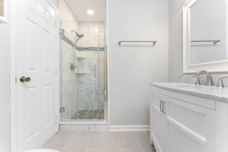 Property Id: 687925 Available to move in NOW -4 bedrooms and 3 full baths end unit townhouse. -1st level features brand new luxury waterproof vinyl flooring, rec/living room, a bedroom/office and newly upgraded full bath. -2nd level features hardwood floor, recently upgraded kitchen with white cabinets and gorgeous quartz countertop with bar and wall to wall backsplash, stainless steel appliances(brand new dishwasher), separate dinning area, large dining and family rooms w/ a wood burning fireplace with marble surrounding. -Top floor features hardwood floor master bedroom suite with large walk in closet, recently upgraded luxury private bathroom with separate shower and tub, 2 more carpet floor bedrooms with large closet and a newly upgraded full bath. -Large and lots of privacy deck and patio backs to woods and common area. -Great community features fitness,19 tennis courts, indoor and outdoor pools, Marina and 8 private man-made lakes and ponds that residents can enjoy fishing&boats