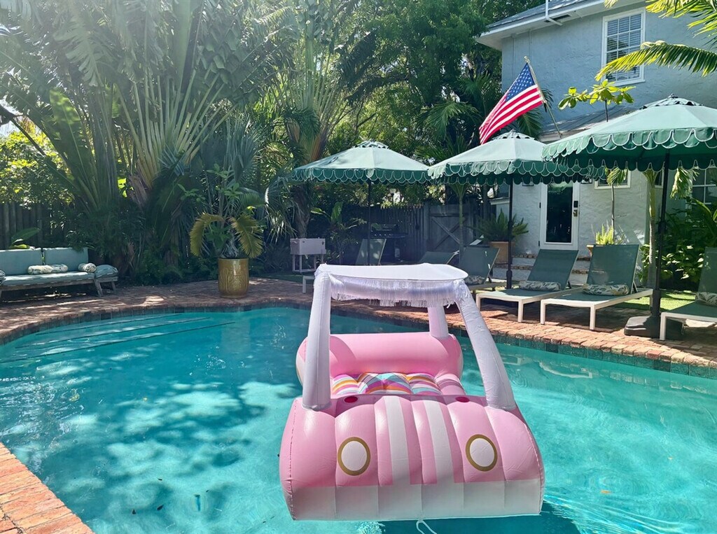 Welcome to The Grove House, an elegant tropical estate just two blocks from the Intracoastal and minutes from Palm Beach. This historic retreat blends retro charm with modern comfort, offering a lush setting perfect for getaways, retreats, and family vacations. Feel at home as you enjoy shared amenities with the back two cottages, such as a heated saltwater pool, bikes, a new barrel sauna, beach gear, and curated design across the entire experience. Wherever you choose to relax, serenity awaits at The Grove House. Enjoy a kitchen with a retro feel, Wi-Fi throughout, a smart TV, and private entry in this two-story main house featuring three bedrooms and three bathrooms. Pets are welcome with a fee of $100 per day per pet, up to two pets, with restrictions applying. The property offers two on-site parking spots and street parking. Located just 6 minutes from Palm Beach Island and Downtown West Palm, 12 minutes from PBI Airport, and 6 minutes from Brightline, this property offers convenient access to local attractions. The property is not childproof, so children must be supervised. There are two cameras onsite for your security: one Ring doorbell cam on the main house facing the street and another Ring camera just inside the property attached to the cottages, facing the side entrance. A digital keypad is available for your convenience. Registration Number: 000032569,