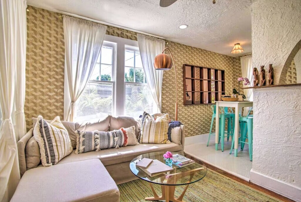 Welcome to The Grove Club, an elegant tropical estate just two blocks from the Intracoastal and minutes from Palm Beach. This historic retreat blends retro charm with modern comfort, offering a lush private setting perfect for group getaways, retreats, and family vacations. Feel at home with a heated saltwater pool, bikes, a new barrel sauna, beach gear, and curated design across three fully equipped units. All the furniture, art, and decor have been hand-selected to showcase a refined, elevated retreat. Each unit includes its own kitchen, Wi-Fi, smart TV, and private entry. The Grove House features three bedrooms and three bathrooms in a two-story main house. The Peach Cottage offers one bedroom and one bathroom on the first floor, while the Lemon Loft provides one bedroom and one bathroom on the second floor with a private hammock porch. Pets are welcome with a fee of $100 per day per pet, up to four pets, with restrictions. There are two on-site parking spots and street parking available. The property is conveniently located just six minutes from Palm Beach Island and Downtown West Palm, twelve minutes from PBI Airport, and six minutes from Brightline. The property is not childproof, so children must be supervised. For your security, there are two cameras on-site: one Ring doorbell cam on the main house facing the street and another Ring camera just inside the property attached to the cottages facing the side entrance. A digital keypad is available for your convenience. Registration Number: 000032569, [SI]