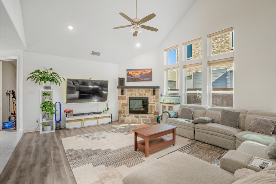 Nestled on a generous corner lot in the vibrant Viridian master-planned community, this striking 2021-built residence at 4424 English Maple Dr, Arlington, TX 76005 offers both sophisticated style and practical family living. Spanning approximately 2,551 sq ft, the home features 4 bedrooms and 3 full bathrooms, offering plenty of room for families or anyone needing additional office or guest space. A refrigerator, washer, and dryer are included for your convenience. The home is pet-friendly, with a $600 pet deposit and pet fee of $100 monthly. Stepping inside, you'll be greeted by soaring ceilings and rich plank-style flooring that carry the eye into a spacious living area anchored by a striking stone fireplace perfect for cozy evenings or welcoming guests. Across from the family room lies an updated chef's-style kitchen with granite countertops, stainless steel appliances, a five-burner gas cooktop, and a central breakfast-bar island that doubles as an entertainer's hub.The main-floor primary suite is a true retreat, offering a generous walk-in closet, separate luxury soaking tub and shower, dual vanities, and direct access to the serene backyard. Upstairs, discover a versatile game room the perfect flexible space for kids, hobbies, or a media lounge. Beyond the home itself, you'll enjoy access to Viridian's trails, parks, lakes, and resort-style amenities, all while remaining conveniently close to major thoroughfares, entertainment, and DFW Airport. This is a good opportunity to enjoy new-home quality, urban-edge convenience, and community charm in one complete package.