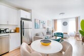 Welcome to your urban sanctuary in the heart of Hell's Kitchen. Indulge in the allure of New York City living with this exquisitely furnished studio apartment. This fully furnished studio offers comfort and convenience with a queen-size bed, plush memory foam mattress, and a fully equipped kitchen with high-end appliances. Enjoy high-speed Wi-Fi, a 50” smart TV, and all-inclusive utilities for a hassle-free stay. Located in a secure elevator building with code-access doors, this stylish home provides both safety and ease. Perfectly situated in a prime location, it’s ready for you to move in—just bring your suitcase! As you step into this generously spacious studio, a flood of natural light welcomes you through the expansive windows, casting a warm and inviting glow on the chic furnishings. The open layout exudes a sense of airiness and liberation, allowing you to effortlessly unwind and bask in the heart of the city's energy. The living room is equipped with a couch, a 50" HDTV smart TV, Wi-Fi, and air conditioning during the summer. The kitchen is fully equipped, perfect for preparing meals and snacks. The apartment is fully furnished with all new furniture, and guests will receive clean linens and towels upon arrival. This is a great option for business and leisure travelers looking for a comfortable, modern, and move-in ready home in the heart of Manhattan. Hell's Kitchen, located on the west side of Manhattan, is a neighborhood that exudes vibrancy, character, and urban charm. With its rich history and diverse community, Hell's Kitchen offers a unique and captivating atmosphere that captures the essence of New York City living. Strolling through the streets of Hell's Kitchen, you'll encounter a fusion of old and new, as historic brownstones coexist alongside sleek high-rises. The neighborhood is known for its bustling streets, lined with an eclectic mix of trendy restaurants, cozy cafes, and vibrant bars. From renowned dining establishments to hidden gem eateries, Hell's Kitchen is a culinary paradise that caters to every palate. New York City's heating season is until the end of May. Beginning around mid-April, window air conditioning will be installed in the apartment. You can request an earlier installation if needed.