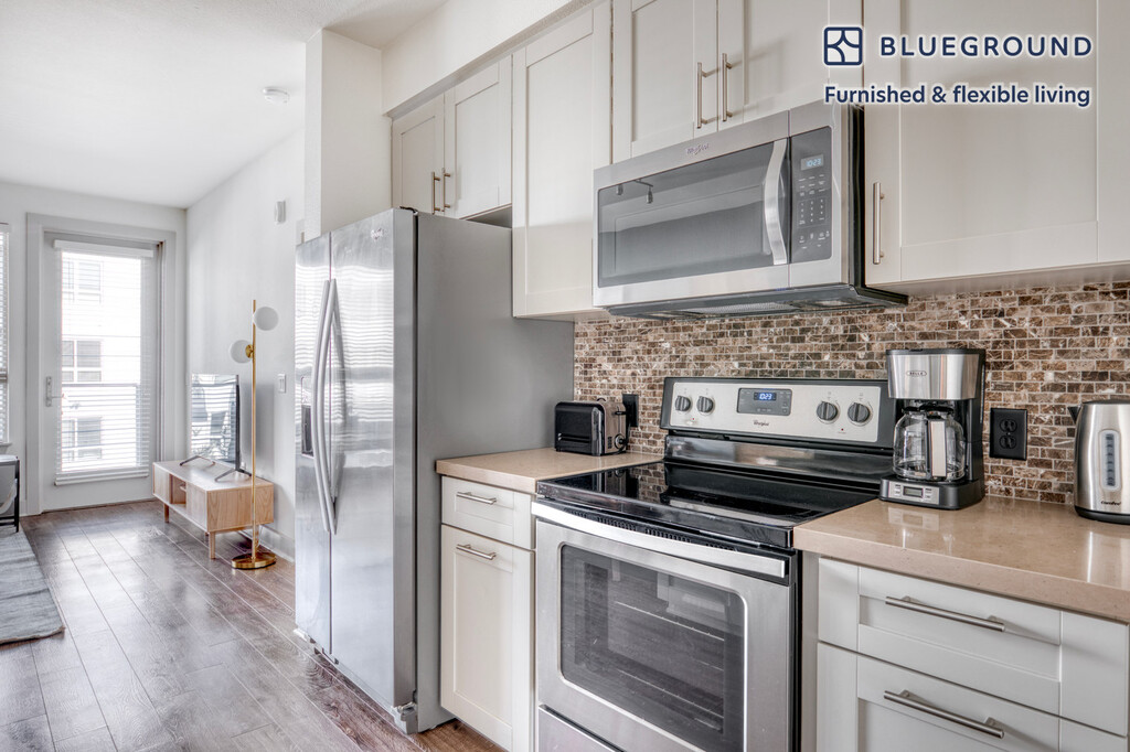Discover the best of San Diego, with this two bedroom apartment in Grantville. It’ll be easy to simply show up and start living in this furnished apartment with its fully equipped kitchen, living room, and our dedicated, on-the-ground support. (ID #SAN4) The advertised rate of $3,160/month is the lowest available price, based on a 11 month(s) and 29 day(s) stay with a move-in date of February 16, 2027. Rates vary depending on the duration of stay, season, and other parameters. For exact pricing and additional pricing components, please visit our website and enter your desired move-in and move-out dates. The rate is applicable when billed upfront; it can be higher if billed in multiple payments. Brokers are welcome to reach out. Were you looking for an unfurnished lease? Try Blueground instead and upgrade from unfurnished to furnished living: - Furnished at rates comparable to unfurnished - No setup or furniture costs - save thousands - Move-in ready - save time, just bring your suitcase Designed with you in mind Gorgeous furniture, fully equipped kitchen, smart TV, and a premium wireless speaker are just a few of the amenities you’ll find inside this two bedroom apartment. Ideally located in San Diego, you’ll find a lot to love outside as well. When you’re ready to relax, you’ll be happy to discover every Blueground bedroom comes with superior quality mattresses, luxury linens, and cozy towels. We handle everything so you can simply show up and start living. This apartment also offers in-apartment laundry. Sleeping arrangements King Bed, 70.8in/180cm King Bed, 70.8in/180cm Amenities Building amenities unique to this two bedroom apartment include an on-site: - Dryer - Elevator - Swimming pool - Washing machine - Media room - Parking - Pets allowed Arrival and ongoing support The entire apartment is yours to enjoy! Throughout your stay, you’ll have access to our Client Experience team through the Blueground App. You can schedule additional cleanings, submit maintenance requests, and view our neighborhood recommendations with just a few taps. We’ll share all details upon confirmation of your stay. Other things to note Building amenities may have an extra cost. This Blueground apartment has flexible lease options, allowing you to book it for one month, a year, or more. Pets are welcome, though weight limits and breed restrictions apply and may incur fees. Parking is offered based on availability and is subject to a fee. We take great pride in ensuring every photo displayed is shot in our own units with our actual furnishings. That said, we regularly refresh our decor and furniture arrangement, which may differ from what’s pictured.