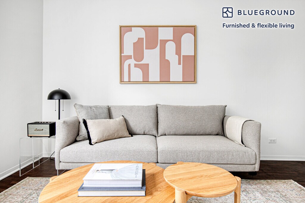 Show up and start living from day one in Chicago with this cheery one bedroom Blueground apartment. You’ll love coming home to this thoughtfully furnished, beautifully designed, and fully equipped Streeterville home with stunning high floor views over the city. (ID #CHI412) The advertised rate of $1,860/month is the lowest available price, based on a 1 month(s) and 22 day(s) stay with a move-in date of November 18, 2025. If you’re looking for a 1-year stay, the rate is $2,570/month. Rates vary depending on the duration of stay, season, and other parameters. For exact pricing and additional pricing components, please visit our website and enter your desired move-in and move-out dates. The rate is applicable when billed upfront; it can be higher if billed in multiple payments. Brokers are welcome to reach out. Were you looking for an unfurnished lease? Try Blueground instead and upgrade from unfurnished to furnished living: - Furnished at rates comparable to unfurnished - No setup or furniture costs - save thousands - Move-in ready - save time, just bring your suitcase Designed with you in mind Thoughtfully designed with bespoke finishes, modern furnishings, and a fully equipped kitchen, you’ll enjoy that “I’m home” feeling with this Blueground apartment. Whether you’re lounging in your beautiful living room streaming the latest and greatest entertainment on the smart TV or premium wireless speaker, or getting some well-earned rest on the superior quality mattress with luxury linens, you’ll fall in love with everything this Streeterville apartment has to offer. Sleeping arrangements King Bed, 70.8in/180cm Amenities Building amenities unique to this one bedroom apartment include an on-site: - BBQ Area - Doorman - Dryer in building - Elevator - Swimming pool - Washing machine in building - Pets allowed Arrival and ongoing support The entire apartment is yours to enjoy! Throughout your stay, you’ll have access to our Client Experience team through the Blueground App. You can schedule additional cleanings, submit maintenance requests, and view our neighborhood recommendations with just a few taps. We’ll share all details upon confirmation of your stay. Ideally Located This furnished rental is located in Streeterville, only a 5 minute walk from The Loop. One of the fastest-developing neighborhoods in Chicago, Streeterville extends out into Lake Michigan and attracts a blend of young professionals, students, and tourists. A plethora of amenities and activities exist for every lifestyle. From Navy Pier activities to luxury shopping on Michigan Avenue, it is a walkable community with easy access to entertainment. Other things to note Building amenities may have an extra cost. This Blueground apartment has flexible lease options, allowing you to book it for one month, a year, or more. Pets are welcome, though weight limits and breed restrictions apply and may incur fees. We take great pride in ensuring every photo displayed is shot in our own units with our actual furnishings. That said, we regularly refresh our decor and furniture arrangement, which may differ from what’s pictured. Also note - This apartment's central location means it can be noisy at times - The apartment is in a busy location, so it will be noisy when your windows are open [SI]