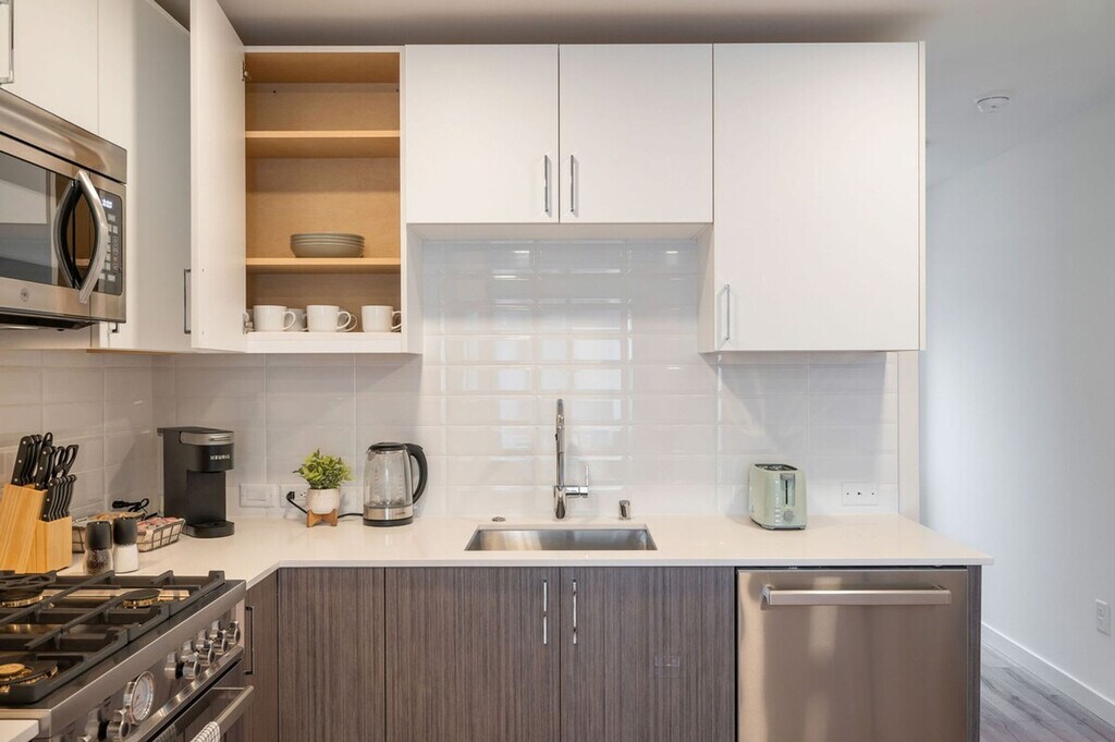 Experience the charm of Wallingford in this chic and centrally located townhome. With a high walk score, this pet-friendly home offers easy access to Amazon, UW, the Zoo, and the Rose Garden, all within 10 minutes. This modern 4-story townhome, including a rooftop, spans 959 sqft and features a few steps along the walkway to the entrance. The townhome boasts a well-thought-out floor plan with 2 bedrooms and 2 bathrooms spread across different levels, making it ideal for group travel. The first floor includes a bedroom with a queen bed, a bathroom, and a laundry area. The second floor features a living room with a smart TV and a queen sofa bed, a dining room, and a fully stocked kitchen with modern appliances, spices, and a Keurig coffee maker. The primary bedroom with a queen bed and an en-suite bath is located on the third floor, while the fourth floor offers a private rooftop deck with outdoor furniture. Enjoy mini-split air conditioning for comfort during the summer heat and high-quality bedding for a restful sleep. While there is no dedicated parking, street parking is free and generally available in this part of town. Well-trained pets are welcome with a fee of $50 per pet per night. The regular nightly rate covers 4 guests, with additional guest fees of $25 per person per night, up to a maximum of 6 guests. Wallingford is a vibrant Seattle neighborhood that charms with its historic allure and modern flair. Stroll along bustling N 45th St., savor eclectic dining, and enjoy stunning skyline views. The area is very walkable with excellent transit options, including multiple bus routes or a quick drive or Uber to downtown Seattle. This townhome is not handicap accessible and requires comfort with stairs due to its multiple stories. Guest access is granted via a smart lock. The property strictly prohibits parties and events, with quiet hours between 10pm and 8am. Smoking or vaping of any kind is not allowed anywhere on the property, including outdoor areas, and there is a $500 fine per violation. Pets should not be allowed on furniture or linens, and guests are asked to pick up after their pets. Registration Number: STR-OPLI-22-000395 [SI]
