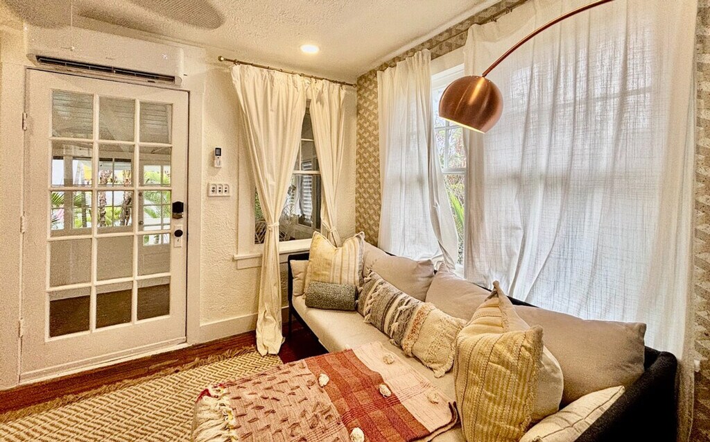 Welcome to the Lemon Loft, an elegant and historic bungalow located in an upstairs cottage as part of the tropical Grove Club estate. Centrally located in the Northwood neighborhood of West Palm Beach, this charming home is just blocks from the Intracoastal and minutes from Palm Beach. The cottage features 1 bedroom and 1 bathroom, situated on the top floor, accessible via a short flight of stairs. In the idyllic courtyard, enjoy shared amenities such as a heated saltwater pool, bikes, a fire pit, beach gear, and curated design across the entire experience, perfect for romantic getaways, couples, and relaxation. The cottage includes its own kitchen, Wi-Fi, smart TV, and private entry. Fluffy bathrobes, baby gear on request, and in-unit laundry are available. Pets are welcome with a fee of $100 per day per pet, up to four pets, with restrictions applied. Plentiful street parking is available along the numbered streets. The location is ideal, with just a 6-minute drive to Palm Beach Island and Downtown West Palm, 12 minutes to PBI Airport, and 6 minutes to Brightline. The property is not childproof, and children must be supervised. There are two cameras onsite for your security: one Ring doorbell cam on the main house facing the street and another Ring camera just inside the property, attached to the cottages, facing the side entrance. A digital keypad is available for your convenience. Registration Number: 000032569,