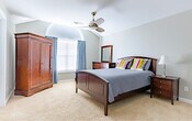 Property Id: 2127427 Spacious, beautiful, very well maintained 3 big size bedroom/2 1/2 bathroom. You will be in awe as you enter the home with 9'ceilings on the 1st floor, 36 cherry kitchen cabinets with crown molding, and black appliances and dining area... The family room features an electric fireplace with built in bookcase and bookshelves. The second floor features a Master fit for a king and queen with Palladian window and a very large walk in closet. The master bath has a shower tub, double bowl vanity and closet. Two additional bedrooms, full bath and the utility room. A laundry with Washer and Dryer included, complete the second floor. The townhouse is furnished - two beds, two bedside tables, two mattresses, one wardrobe, two dresser, one mirror and one table with four chairs. There is also 2 TV, that is, almost furnished. One car covered garage. Owner pays for HOA. The HOA covers landscaping and trash.