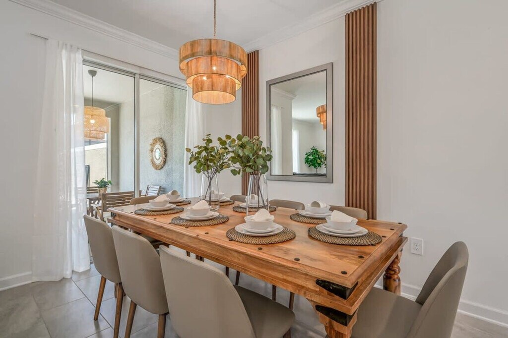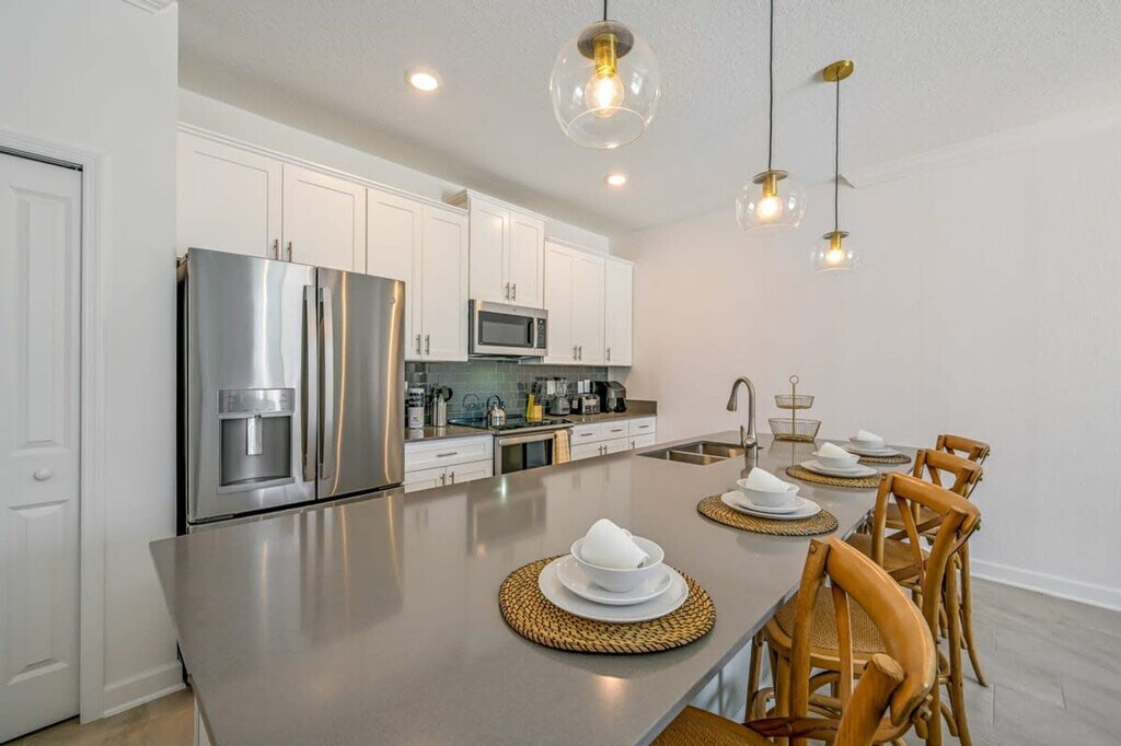 Nestled in the prime location of Storey Lake, Kissimmee's premier resort, discover this exquisite 4-bedroom townhome, tailor-made for unforgettable family or friend getaways. Close to Disney parks and surrounded by diverse eateries and shops, it provides seamless access to major attractions. Step inside to a luminous haven adorned with chic decor. Two enchanting themed bedrooms, Mickey and Minions, infuse a playful spirit. The modern integrated kitchen seamlessly merges with the living space, creating a hub for culinary delights and social bonding. A private pool awaits outside for serene relaxation. Step into this exquisite 4-bedroom townhome, a realm of luxury and elegance that unfolds before you. The moment you step inside, the allure is palpable. The expansive living room, adorned with impeccable taste, seamlessly blends with a fully equipped kitchen, ensuring both style and functionality. A private heatable pool beckons, a refreshing oasis for sun-soaked days when a leisurely dip is all you need. On the first floor, a king-sized bedroom awaits, while upstairs, a master suite boasts another king-sized haven complete with a private bathroom. Two more bedrooms share the second floor, each reflecting unique themes. One boasts Minions-inspired decor, graced with a full and twin bed, while the other exudes Mickey-themed charm, also furnished with a full and twin bed. Practicality intertwines with luxury as a laundry room with washer and dryer simplifies routines. Complimentary WiFi, free parking, and a thoughtful welcome kit with essential amenities further enhance your stay. Here, every detail converges to craft an unparalleled escape, ensuring your vacation is nothing short of remarkable. Replenishment of bathroom and kitchen amenities is the guest's responsibility. Heating the pool is a paid service and there is also a fee charged to use the barbecue grill. Storey Lake Resort has the perfect location just 10 minutes from all major attractions and theme parks in Orlando, including Walt Disney World, Universal Resort, and Sea World. You will find fantastic resort amenities for the whole family to enjoy with a tiki bar, a resort-style pool with slides and lazy river, sports court, mini-golf, kayak, and fitness center. There are 2 clubs inside the property, one of them with a themed pirate pool that kids will love is just walking distance from the house. Located just off Osceola Parkway, the resort has easy access to restaurants, shopping, and supermarkets, everything with just a 5-minute drive distance. Quiet hours are between 22:00 and 8:00.