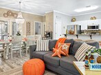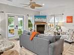 Welcome to Tangerine Cove, a charming 3-story home in Crystal Beach, Destin. This delightful property accommodates up to 12 guests, making it an ideal destination for families and friends. Located just a block from the beach, with a community pool only four houses away, you'll feel at home in this beautifully decorated space with multiple outdoor levels for relaxation. Enter directly from the classic front porch into the living room, complete with cozy beach décor and comfy seating around a natural gas fireplace. The open-concept living area is shared with the kitchen and dining spaces, featuring a full breakfast bar, a designated coffee station, and a dining area with seating for six. The fully stocked kitchen offers extra pantry space, a rare commodity in many rentals. A full laundry room is conveniently located off the living area, providing easy access to the driveway. The property is pet-friendly for up to two dogs per booking, with a $200 pet fee to accommodate guests with allergies through a deeper clean. Only house-trained pets are permitted, and they must be crated if left unattended. A pack and play, high chair, plastic dishes, cups, silverware, and baby gates for the stairs are provided for tiny travelers. Parking is available for up to three vehicles, but RVs, trailers, and watercraft are not permitted due to HOA restrictions. Tangerine Cove is nestled in the Crystal Beach Cottages neighborhood, known for its quiet and charming atmosphere amidst Destin's lively scene. Just a block from public beach access, it's an easy seven-minute walk to the sugar sand beaches and emerald green waters. The home is also a short drive from local restaurants, shopping, grocery stores, and entertainment options, making it a perfect base for exploring the area. Check-in time is 4 PM CST, and check-out time is 10 AM CST. Early check-in and late check-out are occasionally possible. The community pool is for registered guests only, and no pets are allowed in the pool area. Parties and events are not permitted, and any law enforcement calls may result in eviction and loss of the entire security deposit. Noise should be kept to a minimum after 10 PM as per local ordinance. Trash must be taken out on specified days, and furniture should not be rearranged or removed from the home. The spacious deck off the upstairs bedrooms provides a perfect spot for yoga, morning coffee, or catching up on emails after a day at the beach. A small workspace is available in the bonus room attached to the second-floor bedroom suite.