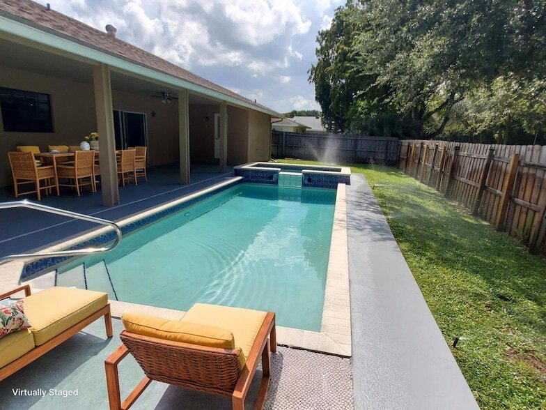 Experience comfortable living in this updated 3-bedroom, 2.5-bath pool home nestled in one of Boca Raton's most sought-after neighborhoods, known for its A-rated schools. Step inside to a bright, open floor plan with soaring vaulted ceilings. The gourmet kitchen has white cabinetry, gleaming granite countertops, and a seamless flow into spacious living areas with tile and wood flooring. Step outside to your private, fenced backyard with a sparkling pool--perfect for relaxing or entertaining. Enjoy the convenience of a 2-car garage, a community park and playground, and the ability to walk to a houses of worship. Just minutes from pristine beaches, upscale shopping, and fine dining. First & security & backgournd check & credit check prior to move in. Quick move-in available-no HOA approval
